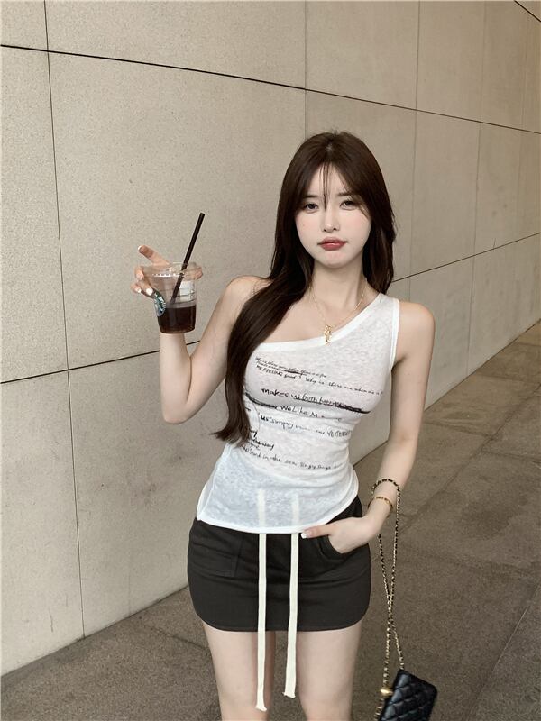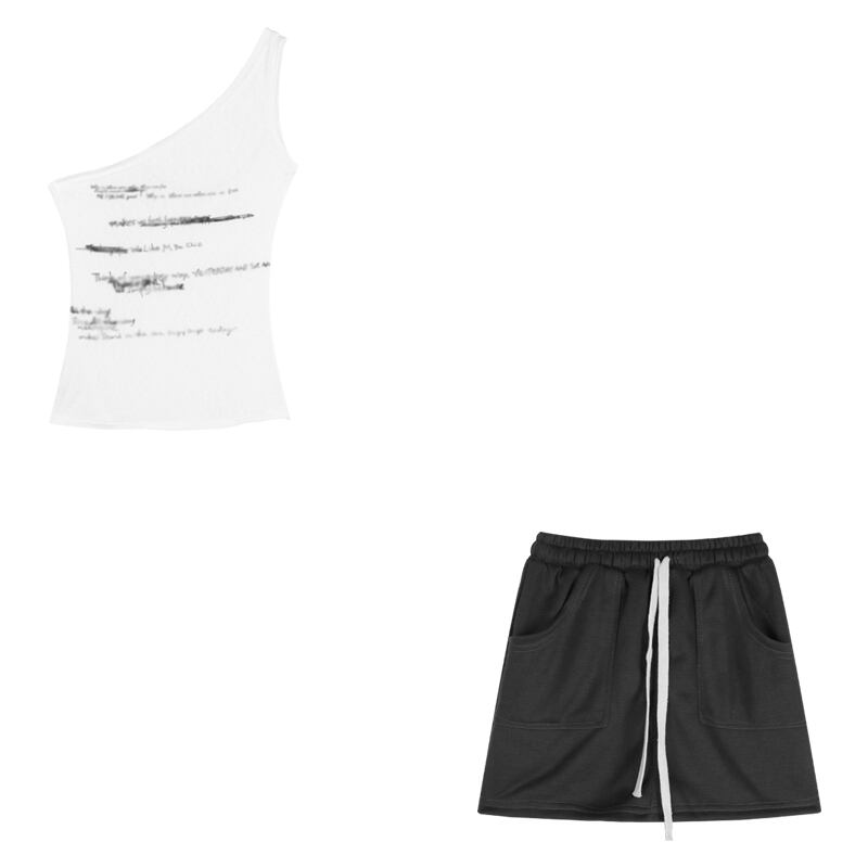 色:レターベスト,グレーのスポーツスカート