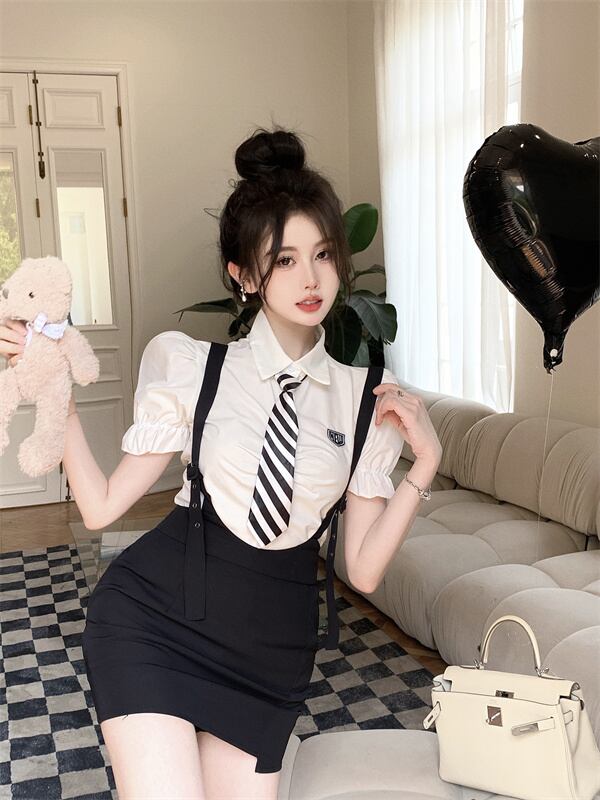 色:シャツ+ネクタイ,ストラップドレス