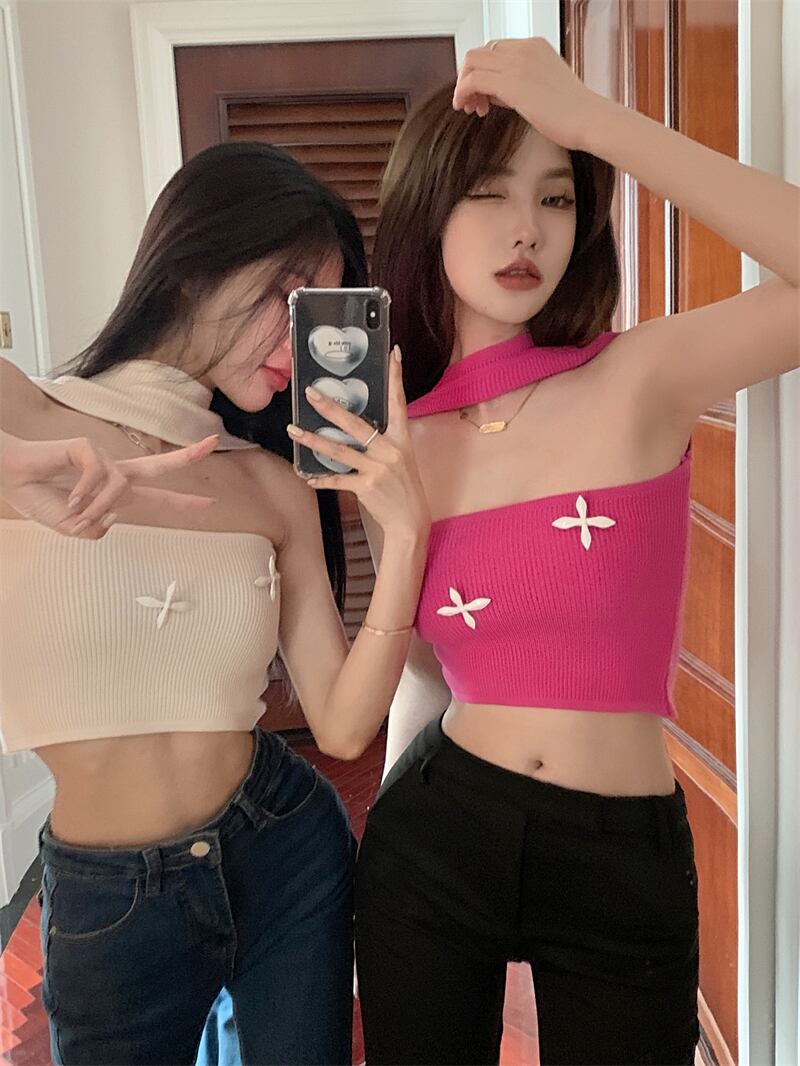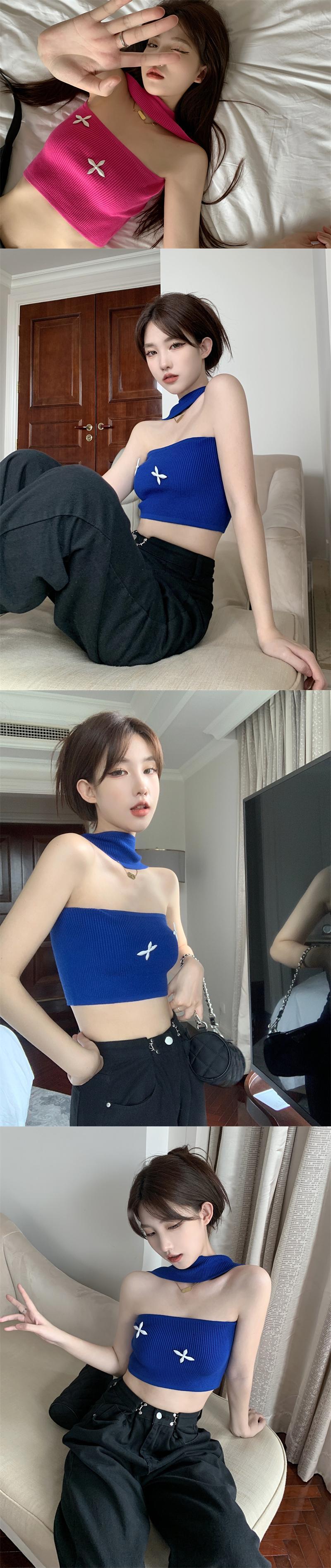 ローズレッドショートワンショルダーチューブトップトップレディースサマースウィート鎖骨ハンギングネック美しいバックキャミソールアウターウェア 大人ガーリー キュート カジュアル 夏物 bstraw37106019924 | beaute25