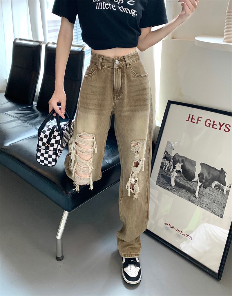 ストリートリッピングストレートジーンズレディースサマールーズインスモールトールウエストは細身ワイドレッグパンツパンツトレンディ 夏物 ワイドパンツ bstraw97767512046 | beaute25