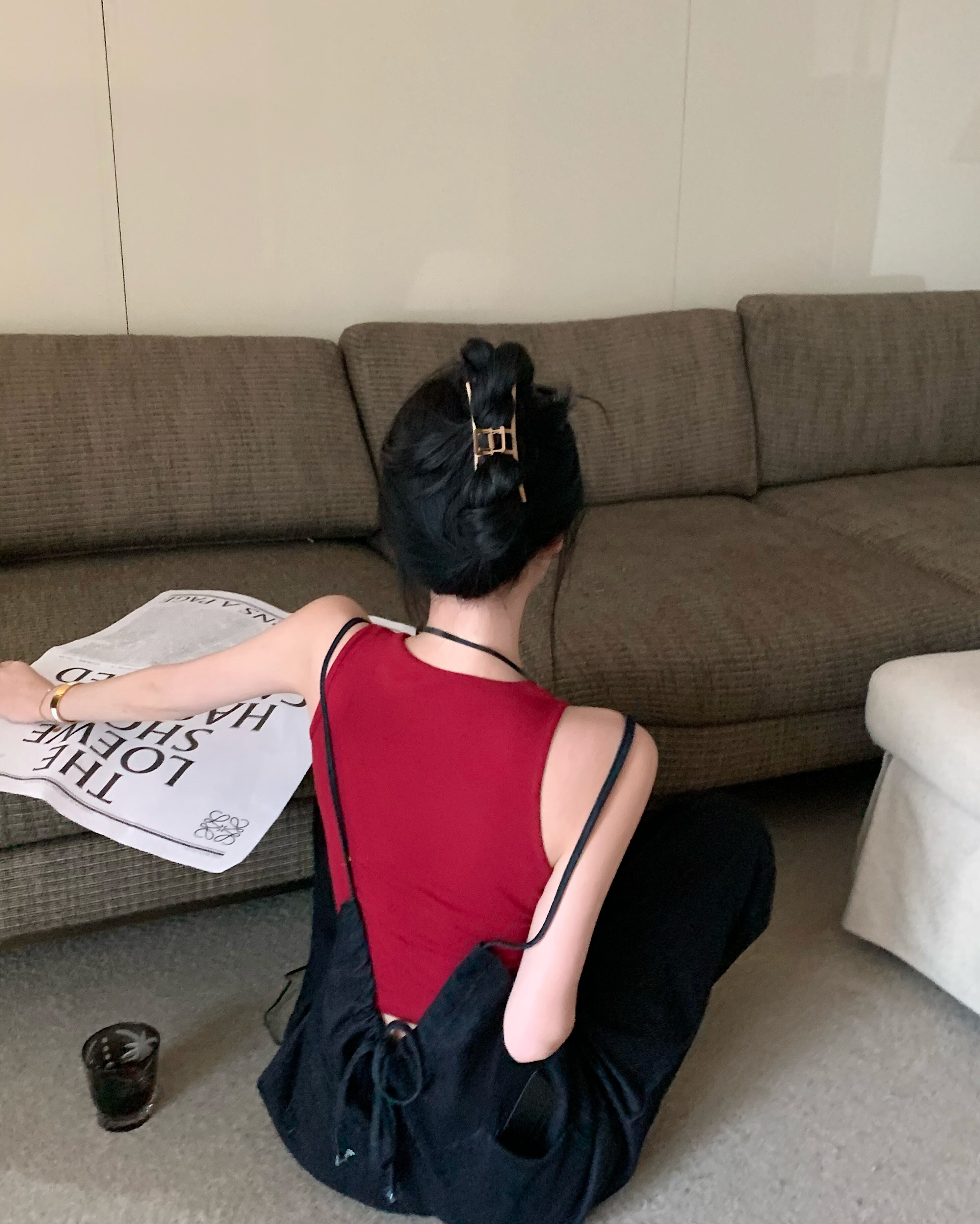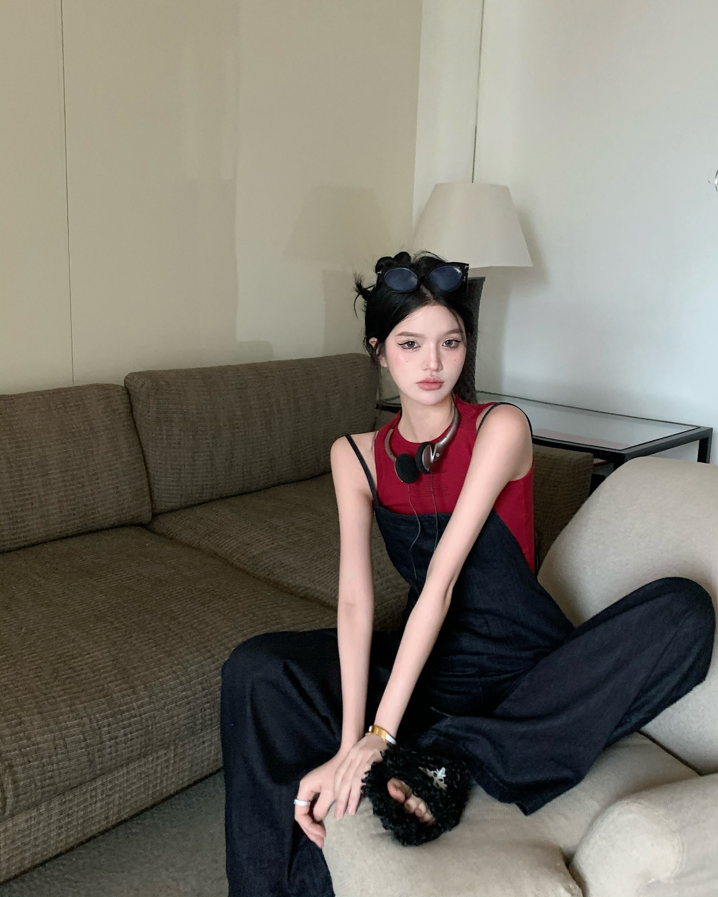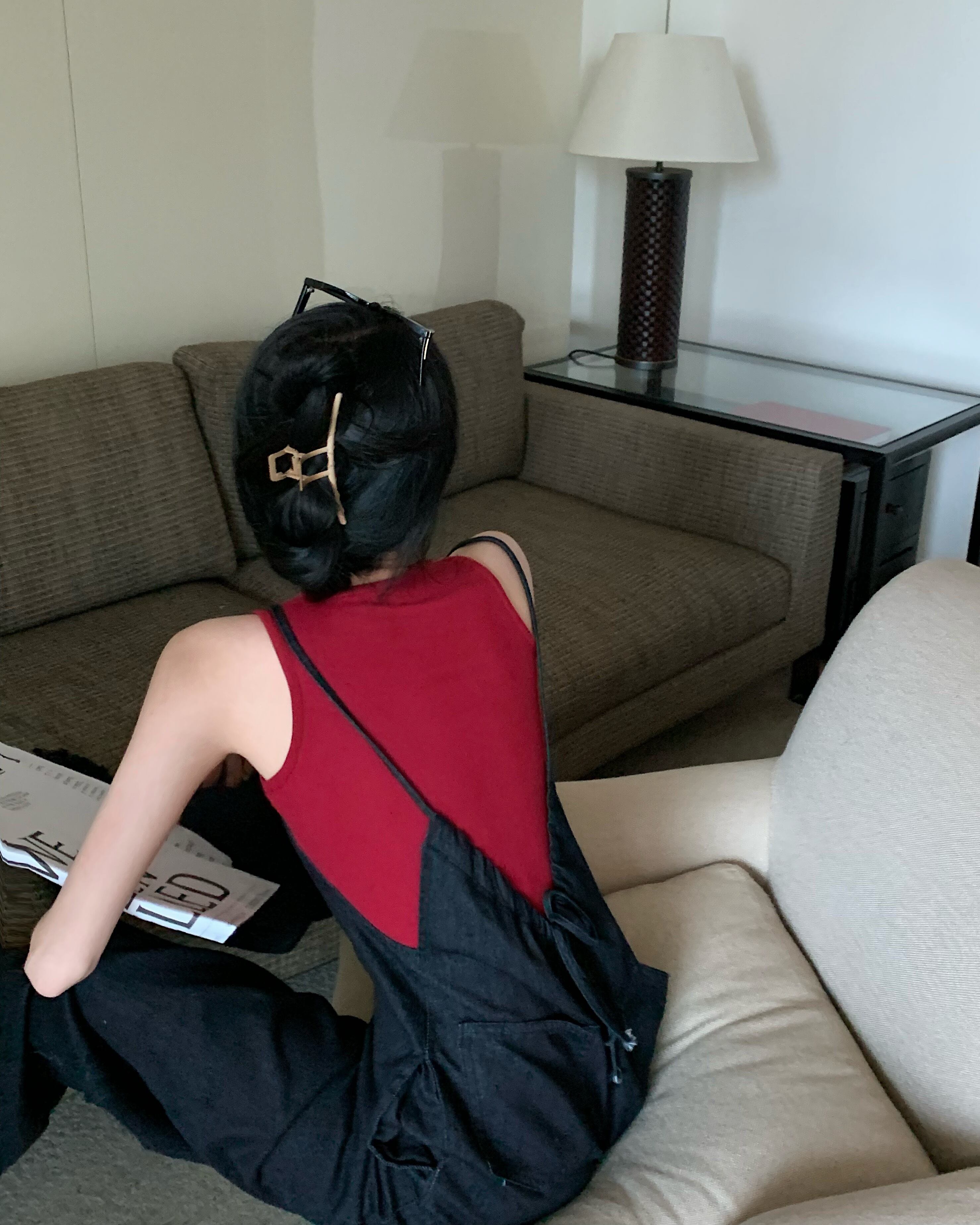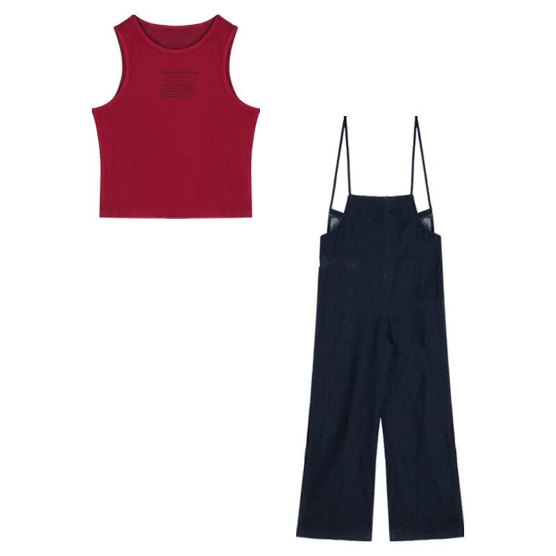 色:赤いベスト,デニムオーバーオール