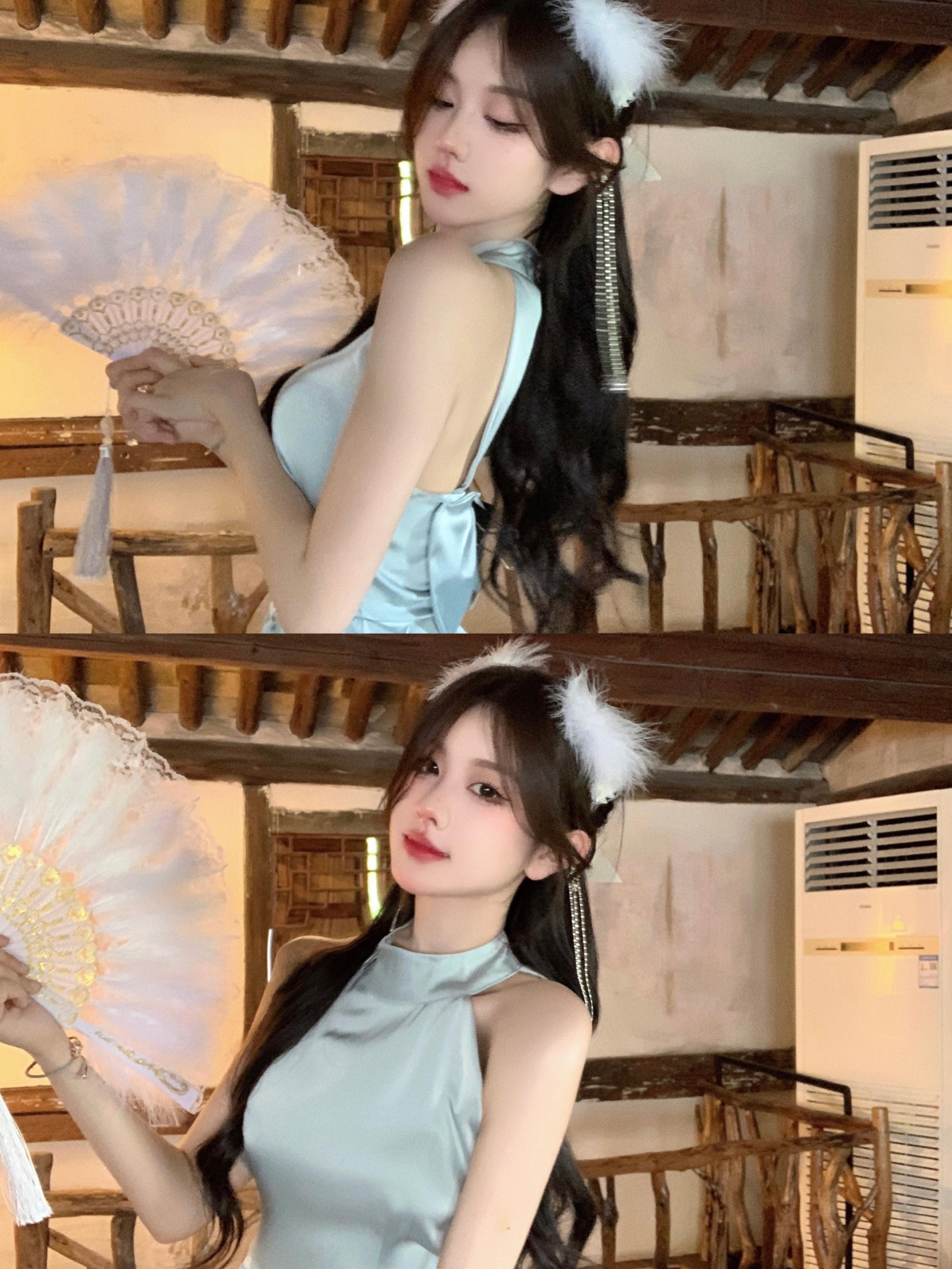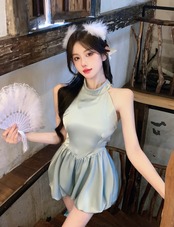 ブルーホルターカジュアルジャンプスーツレディースサマースウィートルーズホロウボウハイウエストワイドレッグショーツ ハイウェスト リボン 大人ガーリー キュート 夏物 ブルマー ワイドパンツ bstraw8734799714 | beaute25