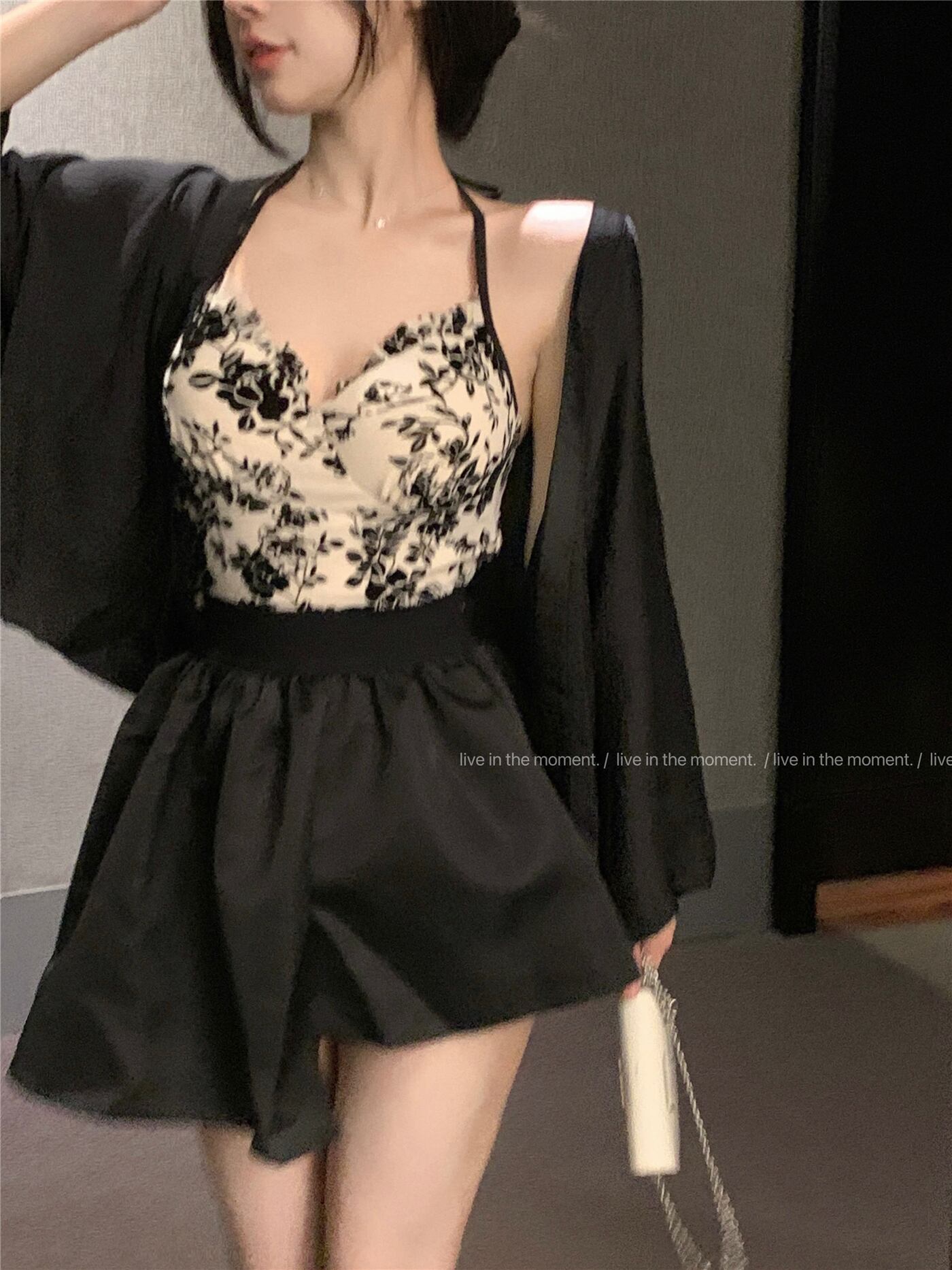 色:フローラルストラップ,日焼け防止カーディガン,黒スカート
