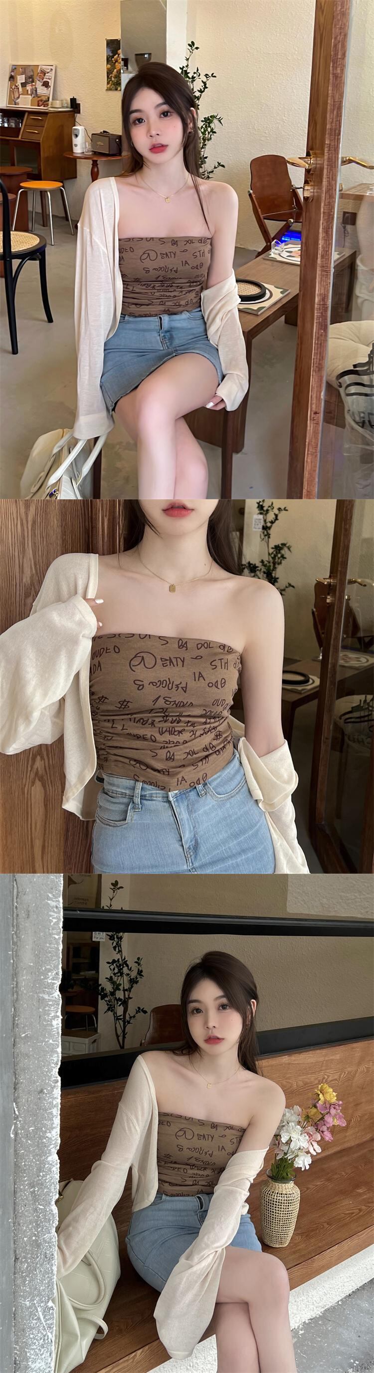 色:グレーのチューブトップ,カードカラーチューブトップ,アプリコットコート,黒いジャケット