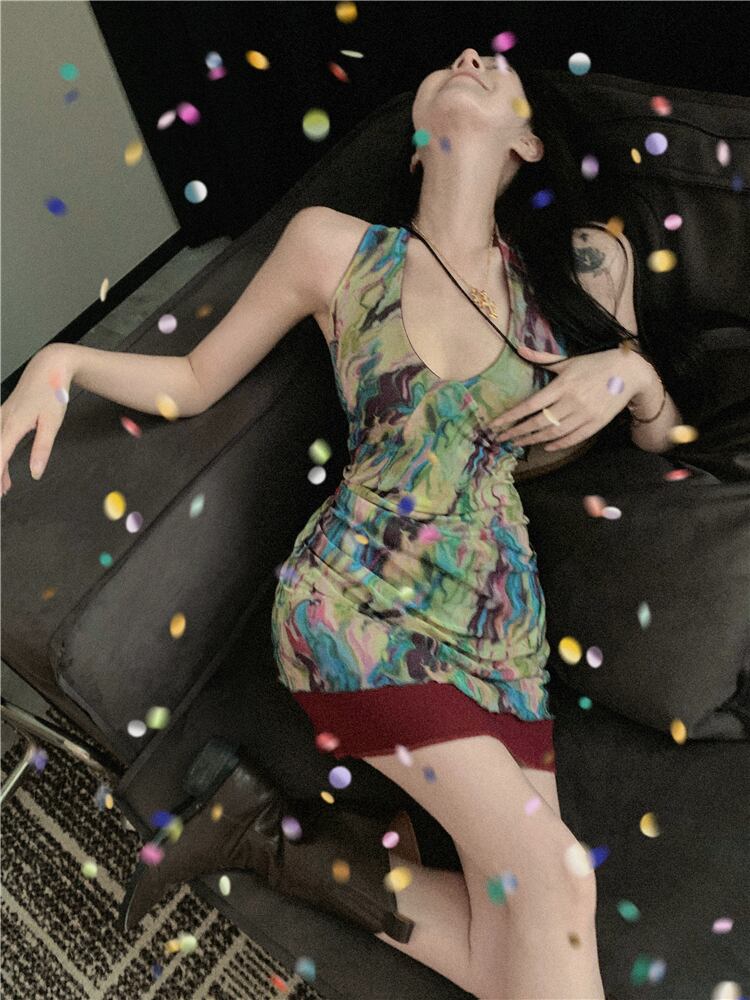 スパイスガールズコントラストカラー油絵ホルタードレスレディースサマーサマーウエストショーシンショーバックセクシースプライシングパッケージヒップショートスカート 夏物 bstraw66303637192 | beaute25