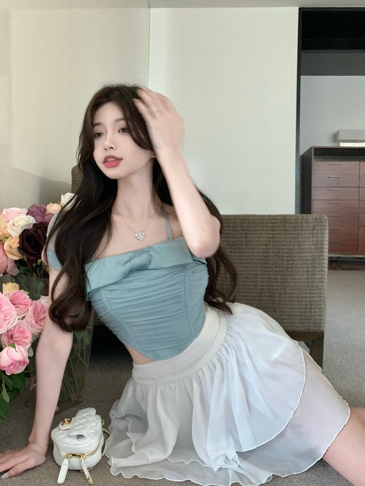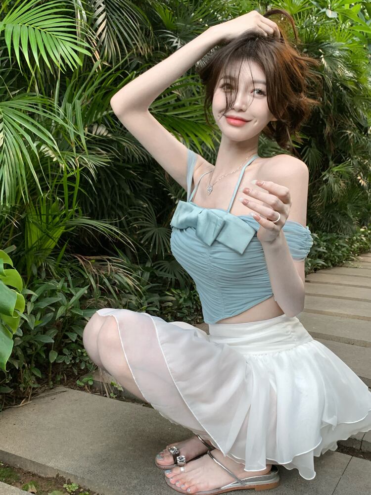 ボウノットホルターネックキャミソール女性夏スウィートベイビーセクシーシックショートアウターウェアインナーボトミングトップ 大人ガーリー キュート カジュアル サマー 夏物 bstraw41000755086 | beaute25