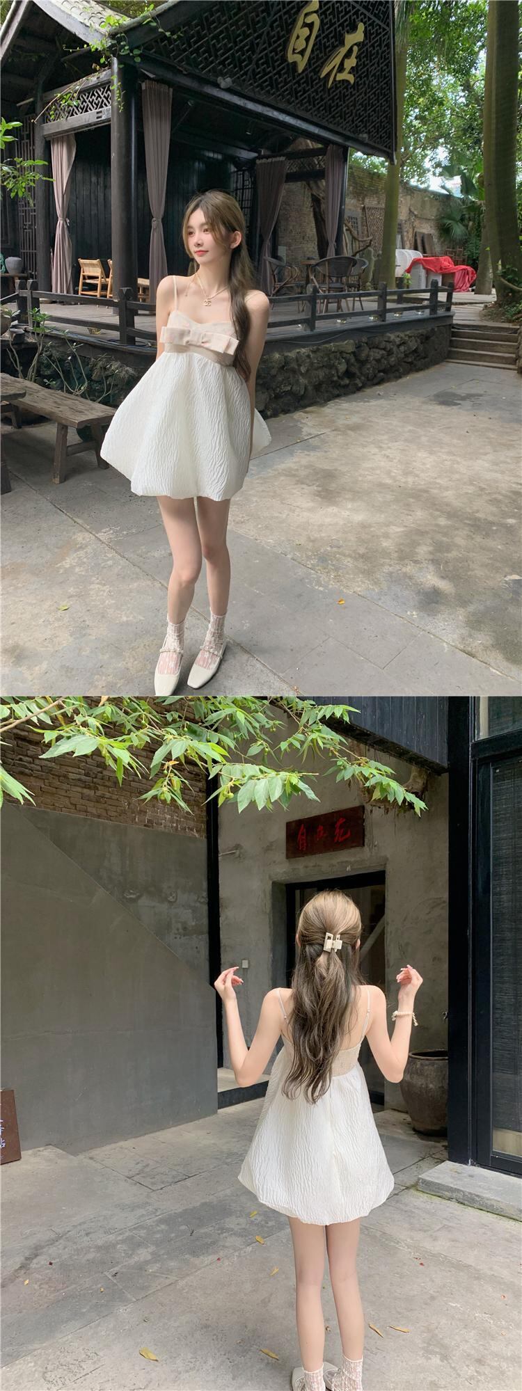 ボウサスペンダードレス2022年夏新しいフレンチスウィートフェアリーウエスト丈ふわふわショートスカート 大人ガーリー キュート カジュアル サマー 夏物 bstraw9045233789 | beaute25