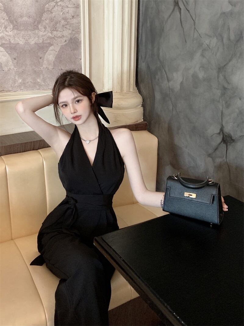 黒の高品質ワンピースカジュアルパンツ女性の夏の薄いセクションハイウエストのルーズで薄いストレートワイドレッグパンツパンツ ブラック サマー 夏物 bstraw85206701358 | beaute25