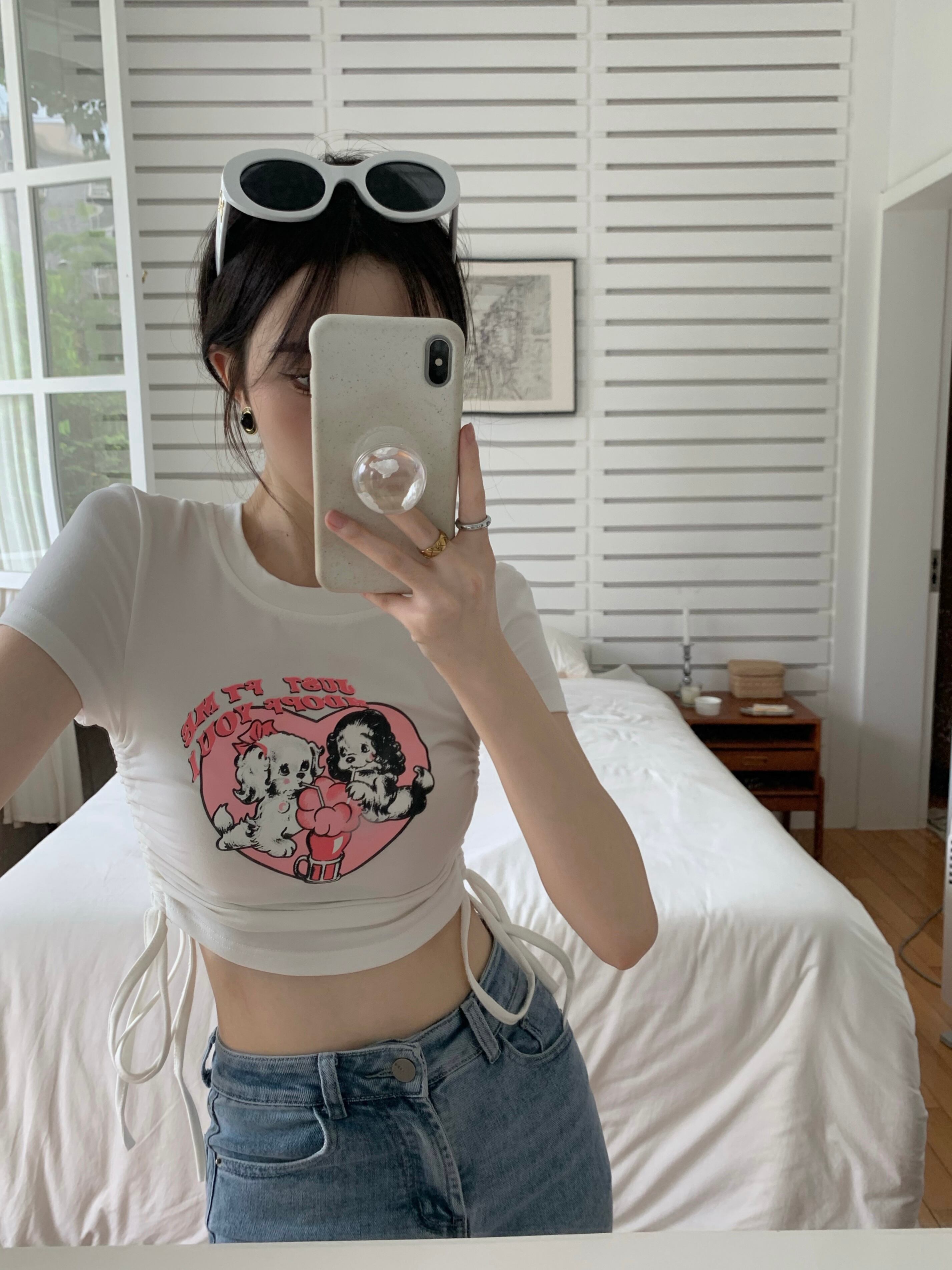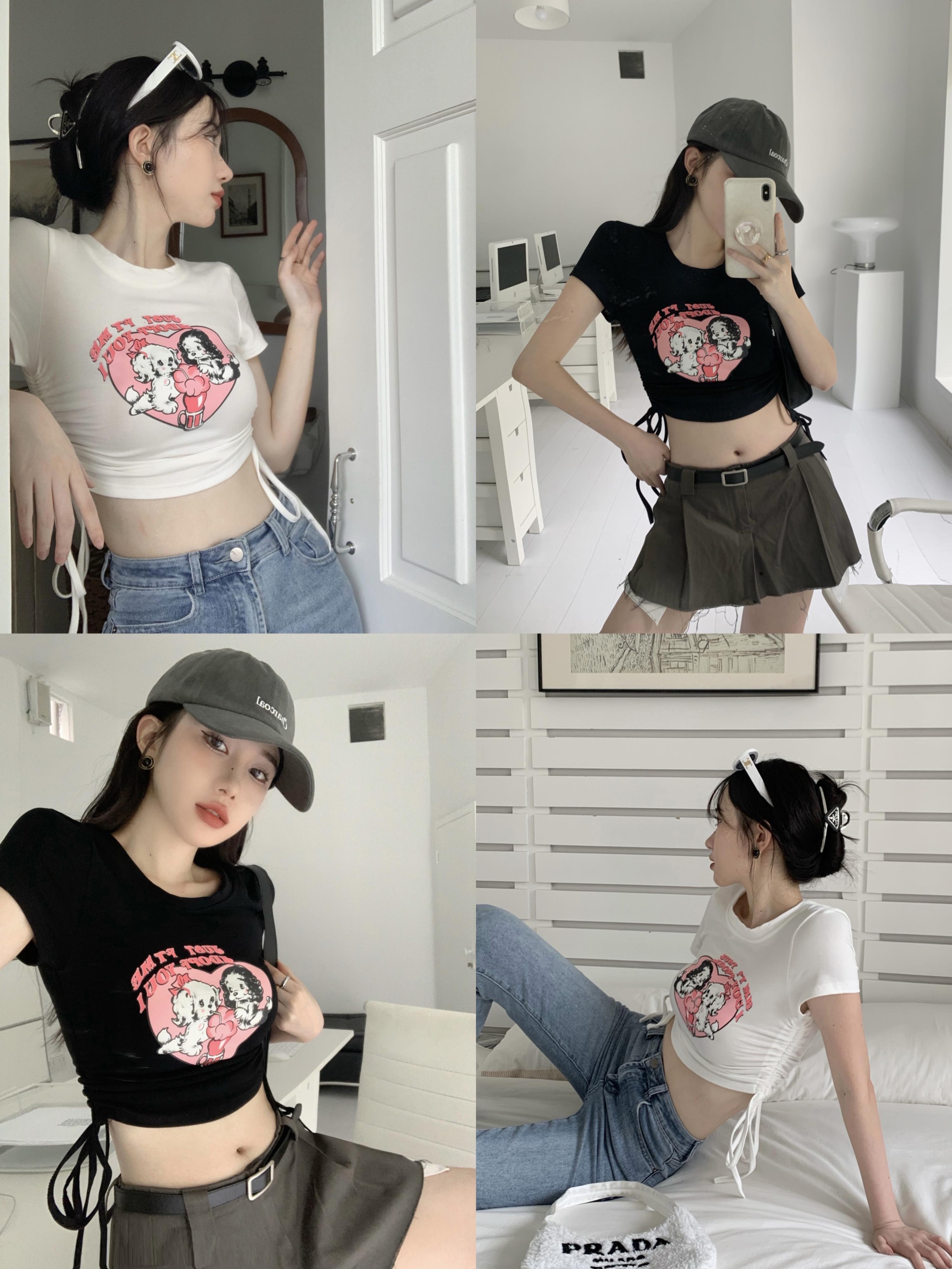 スウィートスパイスガールテーププリント半袖Tシャツレディースサマーホワイトスモールショートタイトタイトシントップ ハーフスリーブ 大人ガーリー キュート カジュアル 夏物 bstraw39537384218 | beaute25