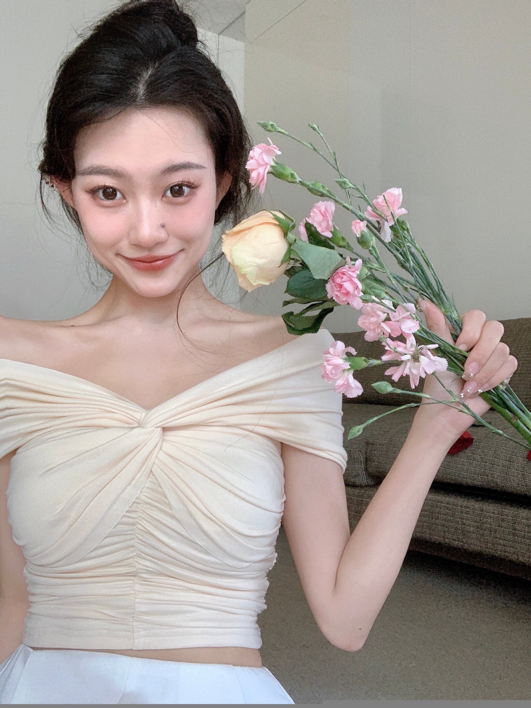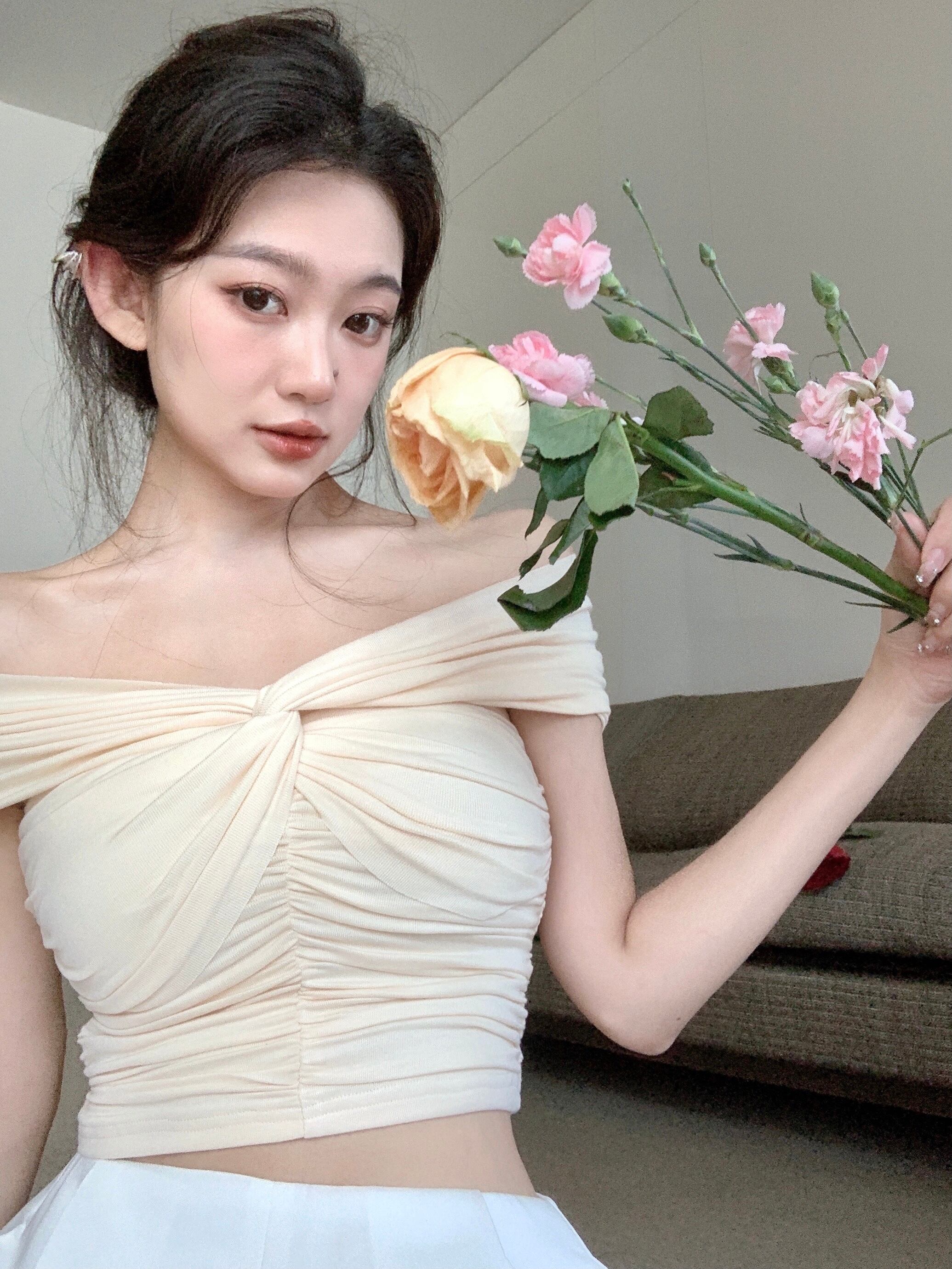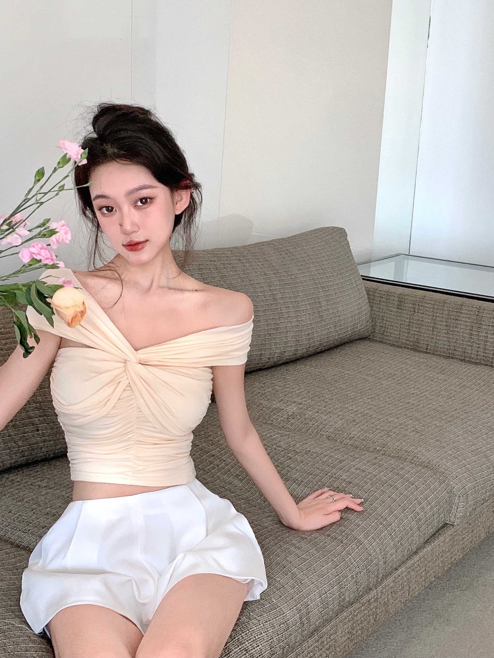 甘いワンショルダーノースリーブTシャツ女性の夏の気質スリムフィットと薄いショートデザインのニッチトップ 大人ガーリー スウィート キュート カジュアル サマー 夏物 bstraw4577810466 | beaute25