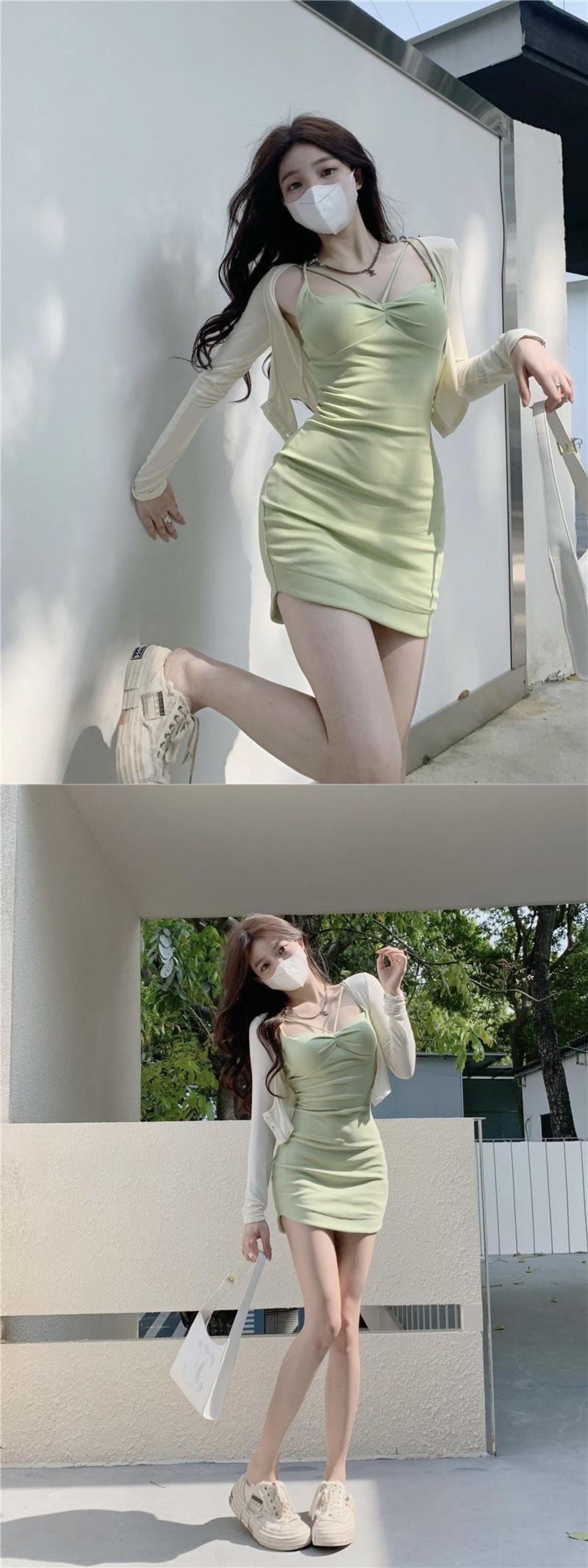 ホットセクシーなサスペンダードレス女性の夏の純粋な欲望風緑ノースリーブ気質ウエストは薄いバッグヒップショートスカートでした サマー 夏物 ピュア グリーン bstraw52282564383 | beaute25