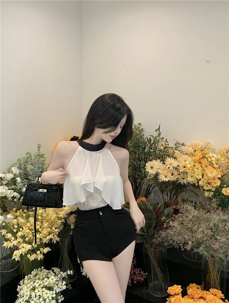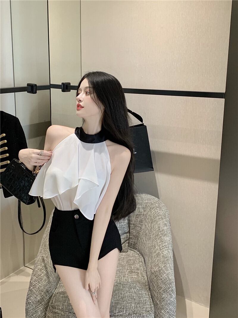 ホルターネックシフォンシャツレディースサマーオフショルダーフレンチスウィート気質ノースリーブシャツデザインセンスニッチショートトップ 大人ガーリー キュート カジュアル 夏物 bstraw97434822297 | beaute25
