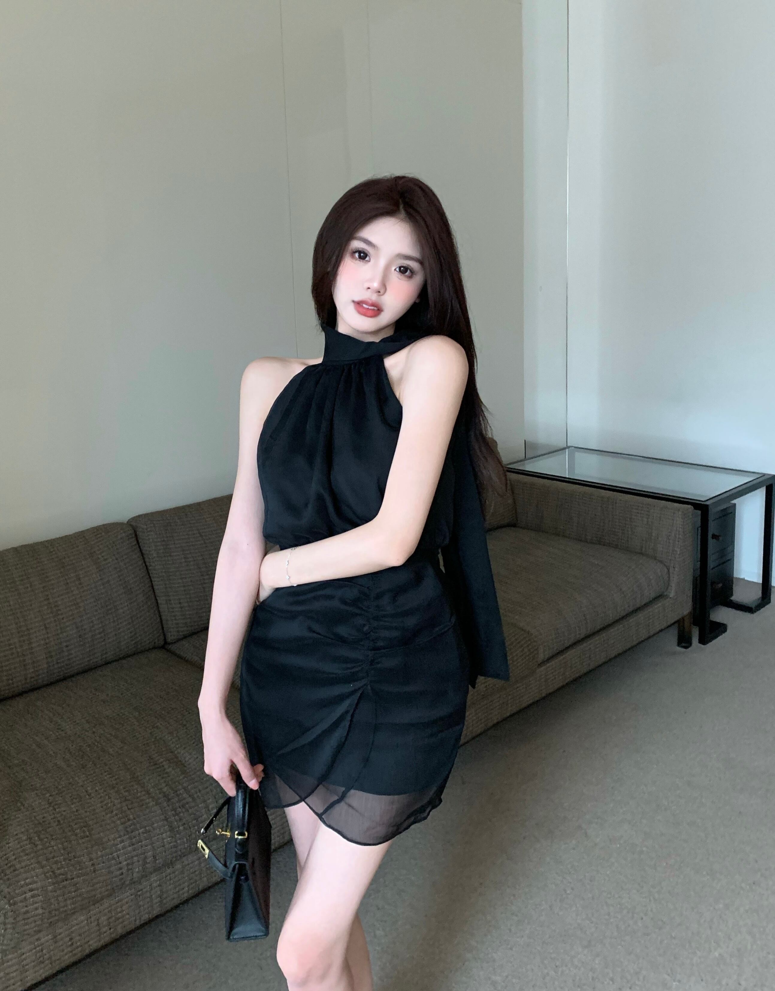 フランスのオフショルダーのセクシーなホルタードレス女性の夏の純粋な欲望リトルブラックドレスウエストスリムショートスカート サマー 夏物 ピュア bstraw17605757102 | beaute25