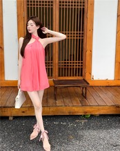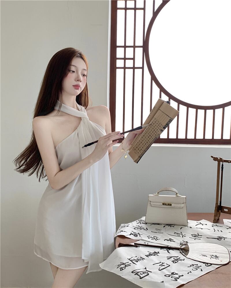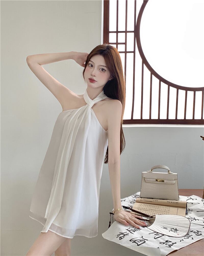 白いノースリーブホルターネックドレス女性の2022年夏新しい高品質の気質ストリーマールーズバッグヒップショートスカート ホワイト サマー 夏物 bstraw60875287154 | beaute25