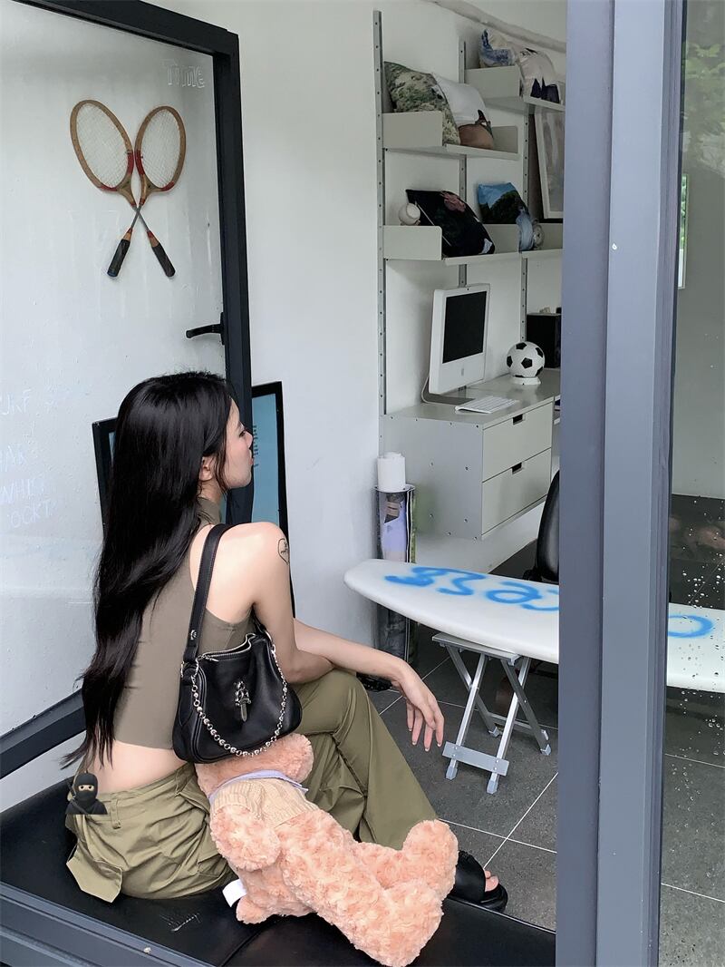 アーミーグリーンドローストリングオーバーオールレディースドレープカジュアルモッピングパンツサマーシンセクションハイウエストストレートワイドレッグパンツ ハイウェスト 夏物 ワイドパンツ bstraw6540491018 | beaute25