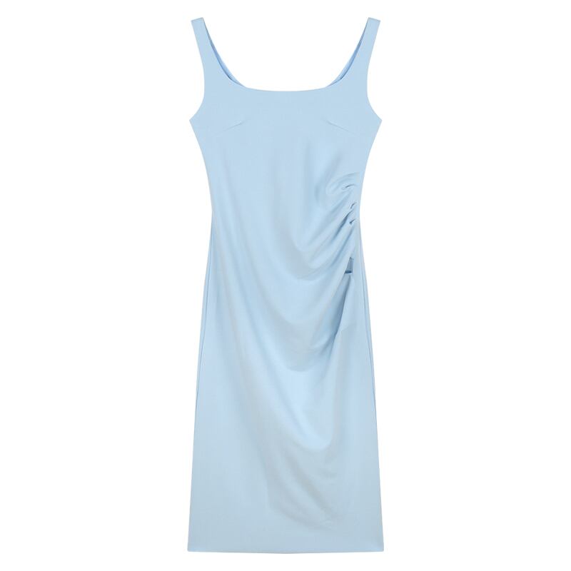 ブルーのスクエアネックサスペンダードレスレディースサマーヘップバーンスタイルセクシータイトフィット薄手のノースリーブミドル丈ヒップスカート 夏物 スクウェア bstraw82447222578 | beaute25