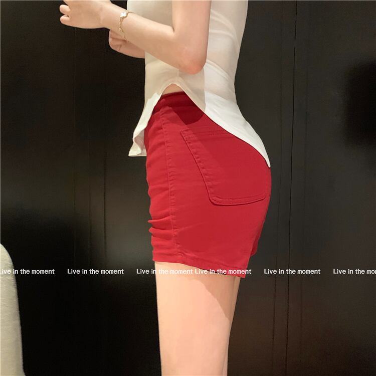 赤いタイトフィットヒップリフティングパンツは、トレンディな女性の夏の薄いカジュアルショーツハイウエストスリムパックヒップパンツです レッド サマー 夏物 ブルマー bstraw25394472670 | beaute25