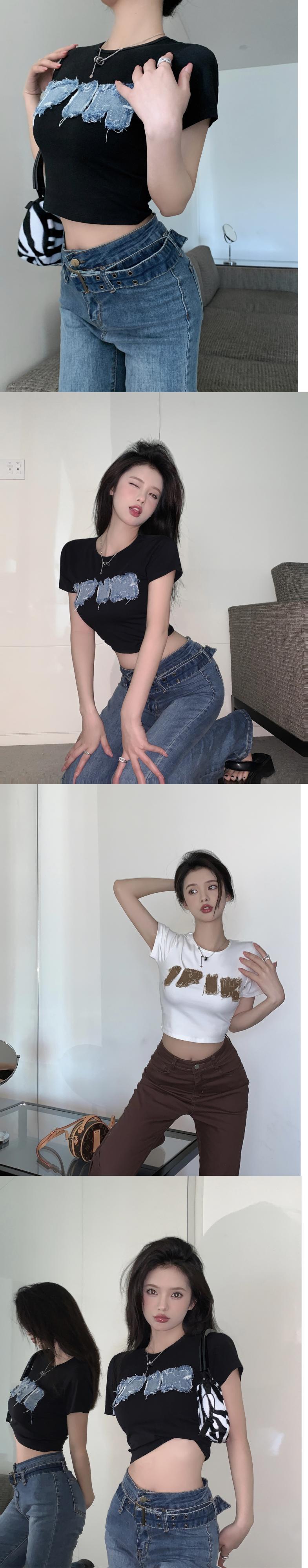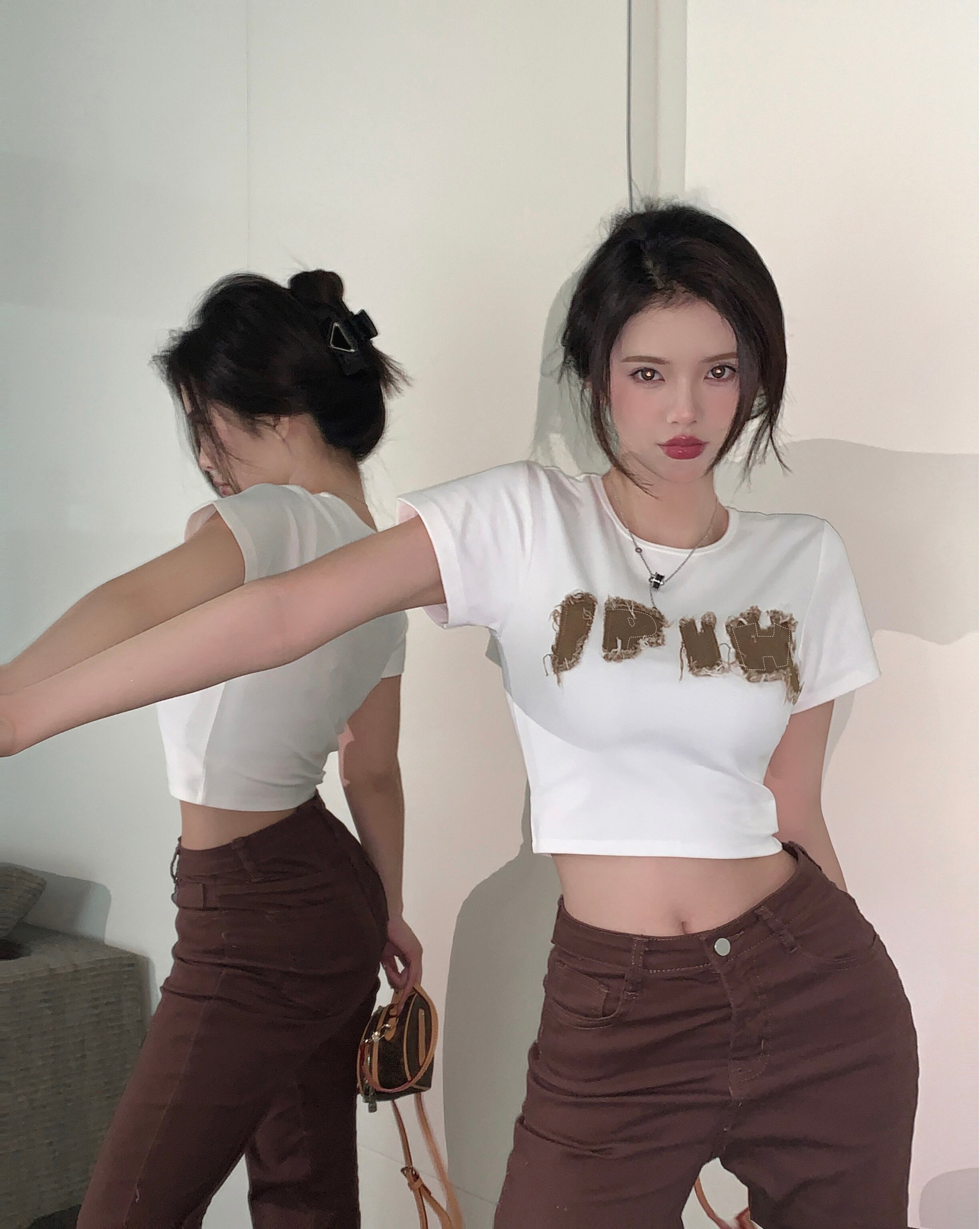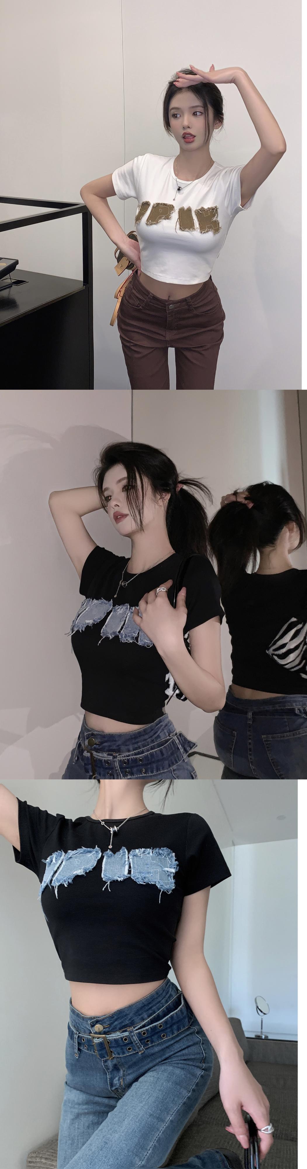 スウィートスパイス半袖Tシャツレディースサマーピュアデザイアセクシーショートピーススプライシングスリムフィットスリムスモールトップ ハーフスリーブ 大人ガーリー キュート カジュアル 夏物 bstraw16438652912 | beaute25