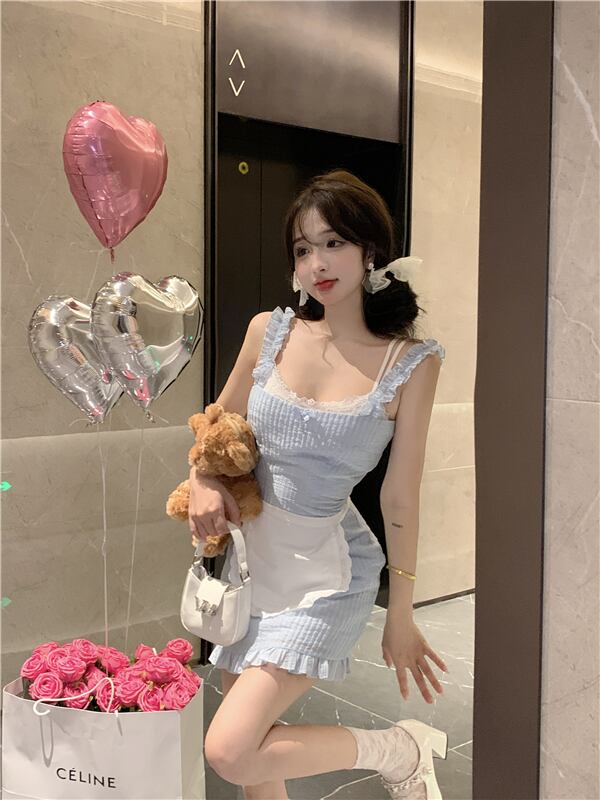 純粋な欲望の弓サスペンダードレス女性の夏の甘いハイエンドノースリーブ気質セクシーなパッケージヒップショートスカート リボン 大人ガーリー スウィート キュート カジュアル サマー 夏物 bstraw4334947128 | beaute25