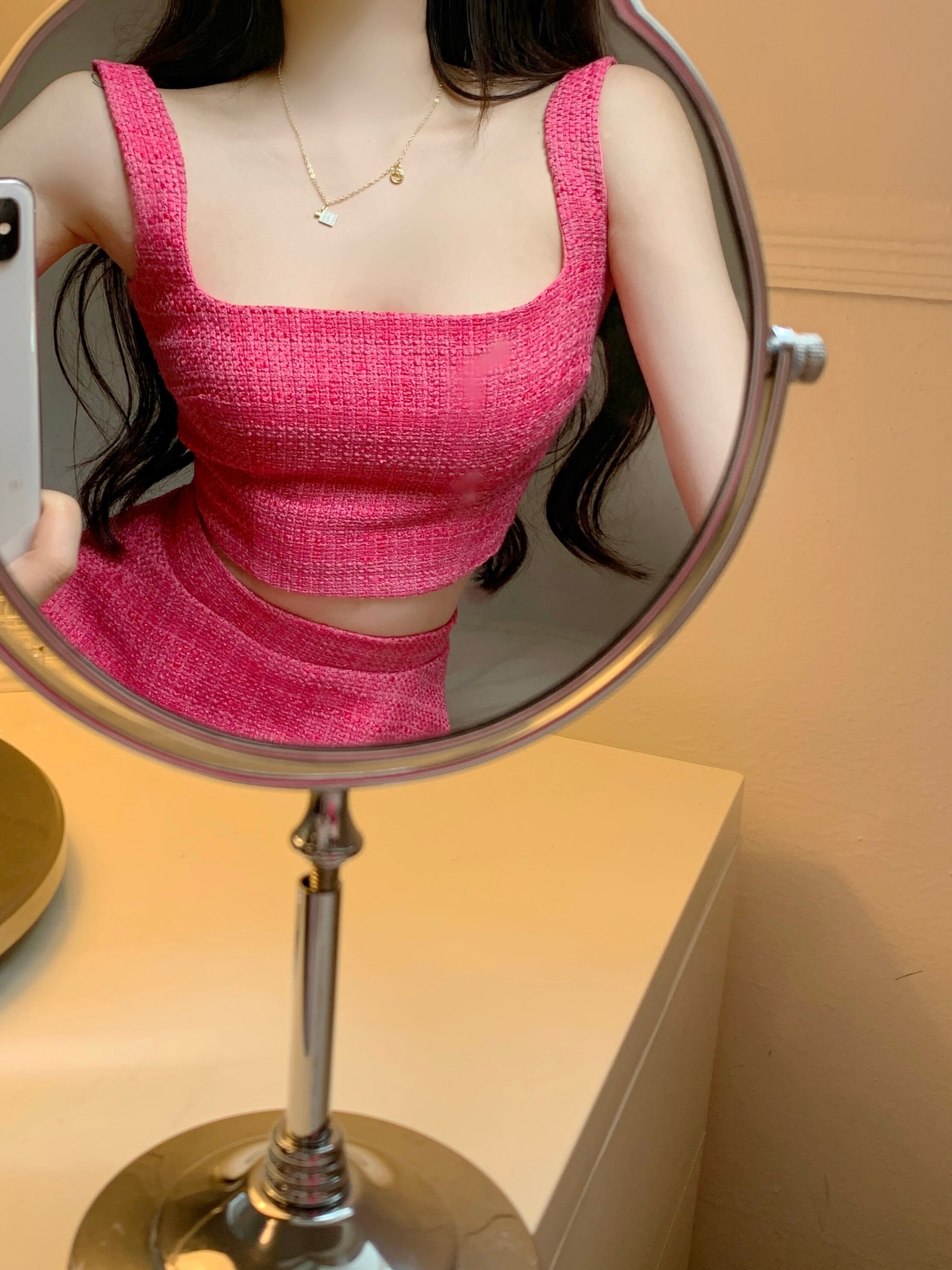 ピンクノースリーブキャミソールベストサマースウィートスパイスガールスモールフレグランスショートスリムトップアウターウェア 大人ガーリー キュート カジュアル 夏物 bstraw64442633571 | beaute25