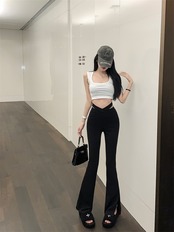 ブラック スリット スリム ストレート カジュアル パンツ レディース 夏 小男 モップ 床 中空アウト ハイウエスト スリム ホーン パンツ サマー 夏物 bstraw764223252 | beaute25