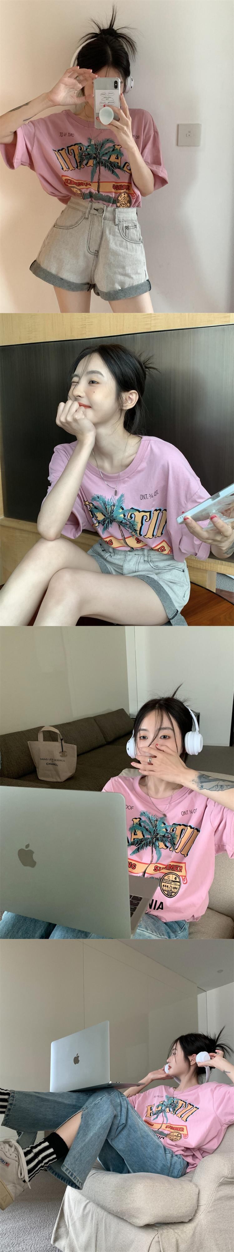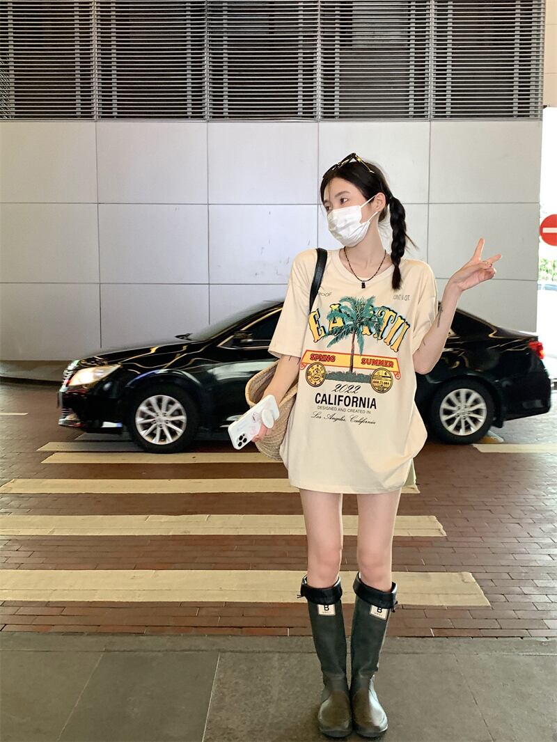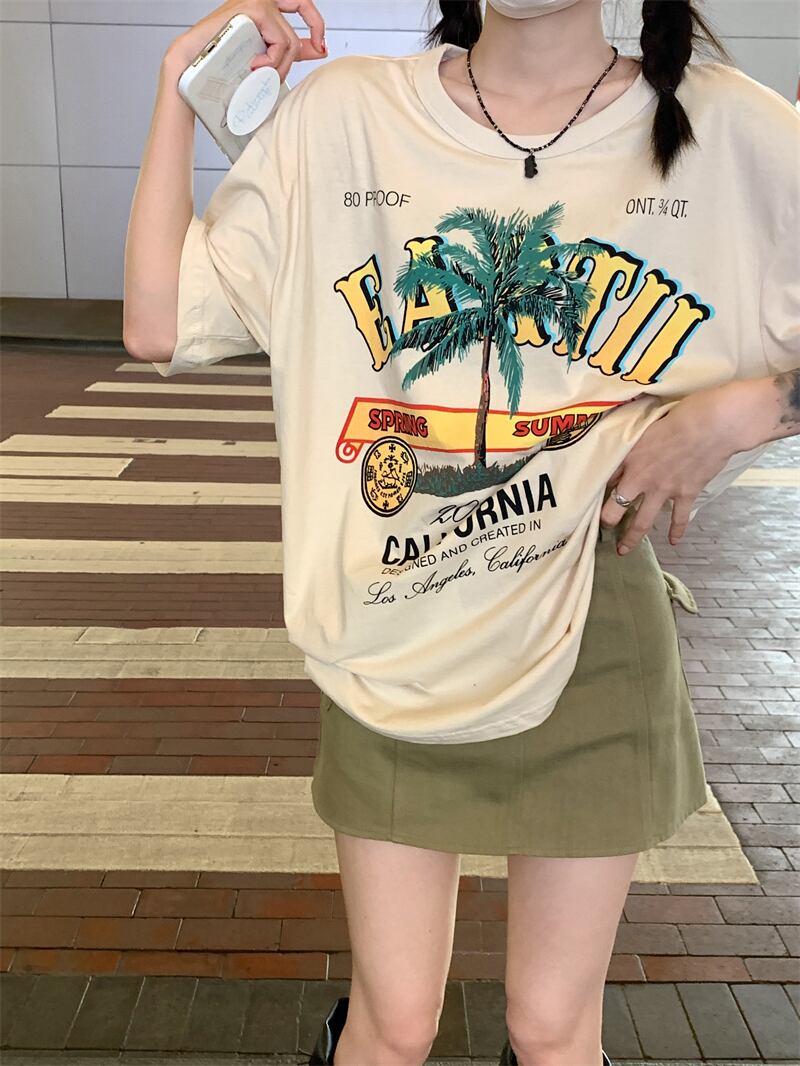 アメリカンレトロ万能フロントショルダー半袖Tシャツ レディース 2022年夏 大きめ ゆったり ミドル丈 トップス ショート ハーフスリーブ サマー 夏物 bstraw96010541367 | beaute25