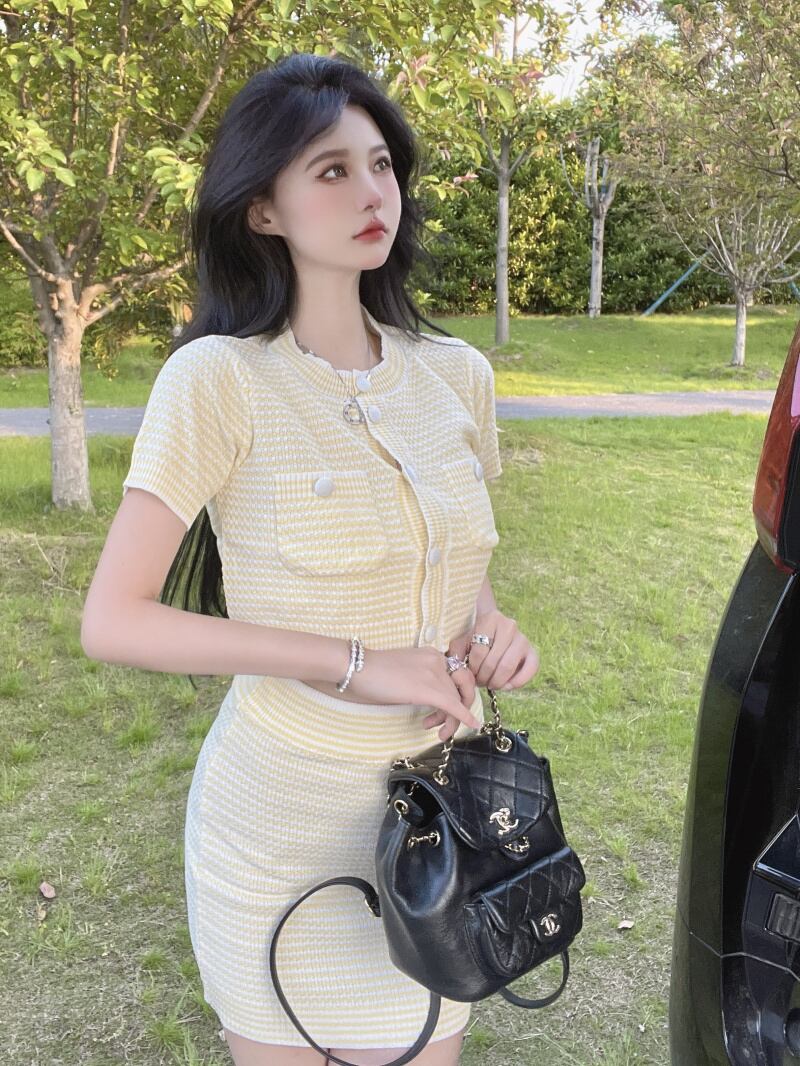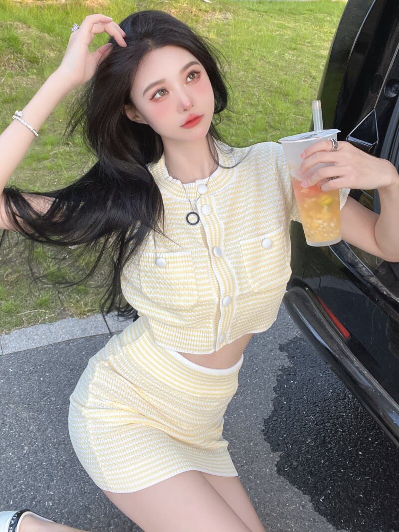 Xiaoxiangfeng 穏やかな気質の半袖ショート ニット セーター女性の夏のスーツ バッグ ヒップ ハーフ丈 ショート スカート 2 点セット サマー 夏物 bstraw35610341746 | beaute25