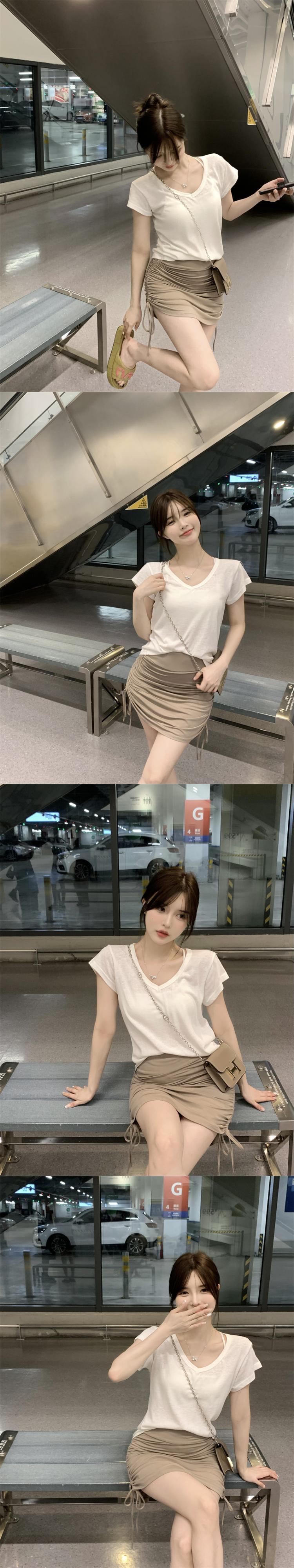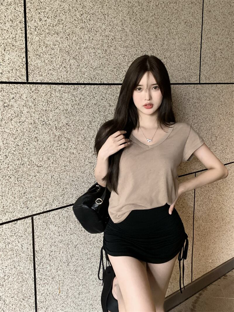 色:ホワイトトップ,カーキトップ,コーヒー色のスカート,黒スカート