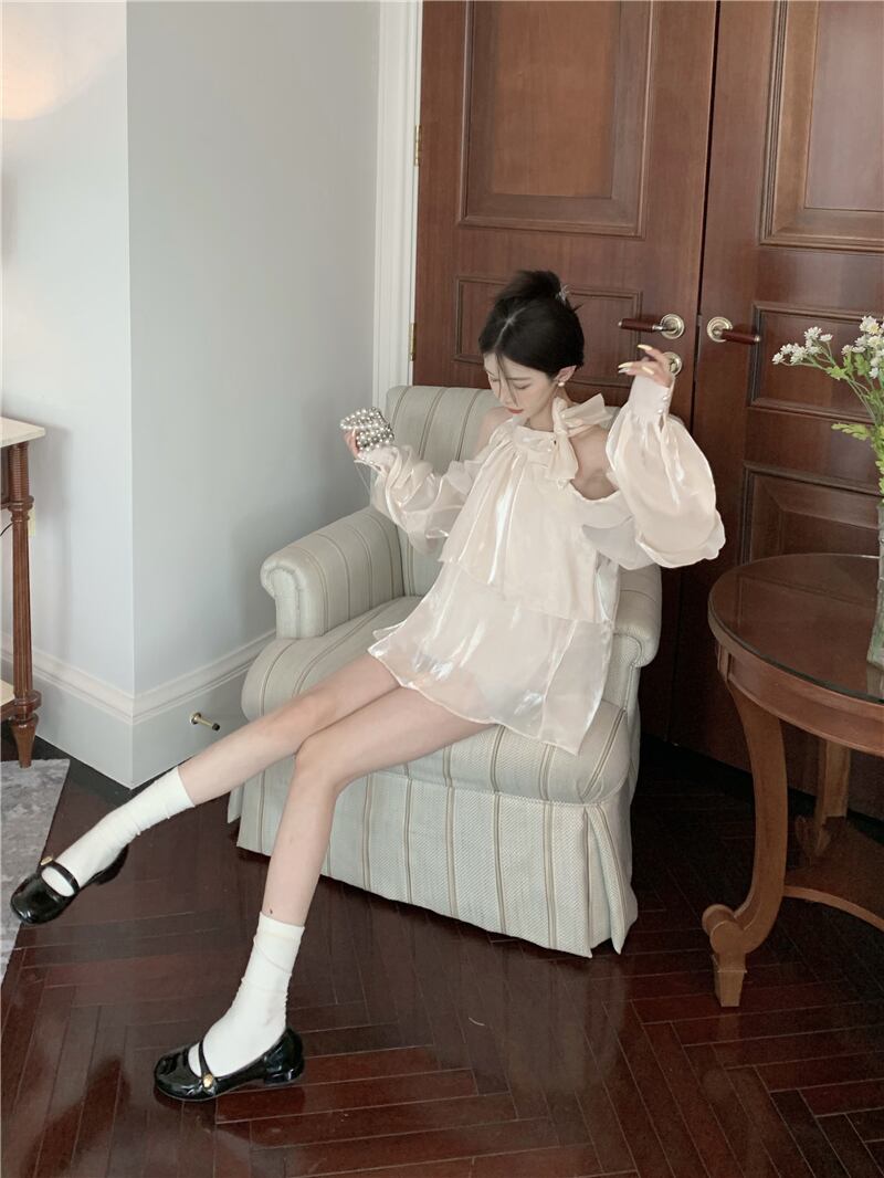 マーメイド ジ オフショルダー シャツ レディース 夏 デザインニッチ アプリコット 優しい風 ゆったり 長袖 ショートシャツ トップス ロング サマー 夏物 bstraw54908064105 | beaute25