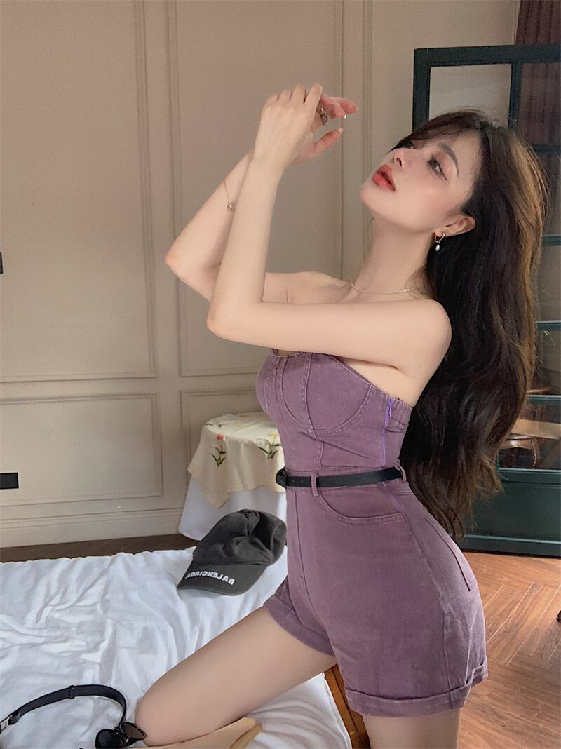 グリーン カーリー ワンピース デニム ショートパンツ レディース 夏 デザイン感 小さめ トールウエスト ワンショルダー チューブトップ ワイドレッグパンツ サマー 夏物 ショーツ ブルマー bstraw62270503430 | beaute25