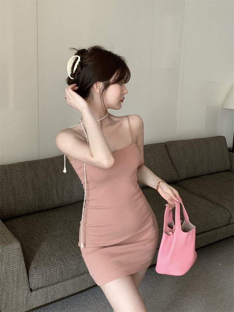 ピンクのノースリーブ ワンショルダー セクシーなスリング ドレス女性の夏の甘いホット ガール ウエスト気質パッケージ ヒップ ショート スカート 大人ガーリー スウィート キュート カジュアル サマー 夏物 bstraw40584033991 | beaute25