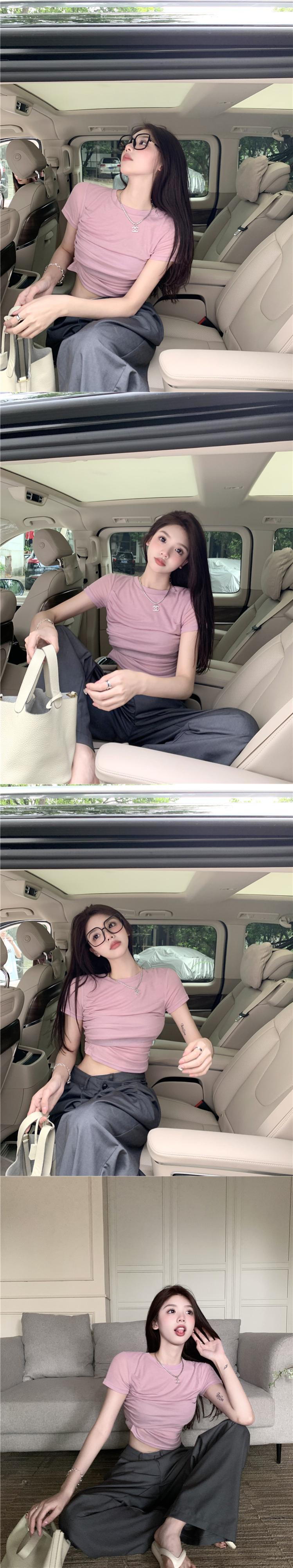 スイートスパイス Tシャツ レディース イン トレンド 夏 グレー ひだ シック タイト タイト 薄手 小さめ 半袖 トップス ショート ハーフスリーブ 大人ガーリー スウィート キュート カジュアル サマー 夏物 bstraw88487802556 | beaute25