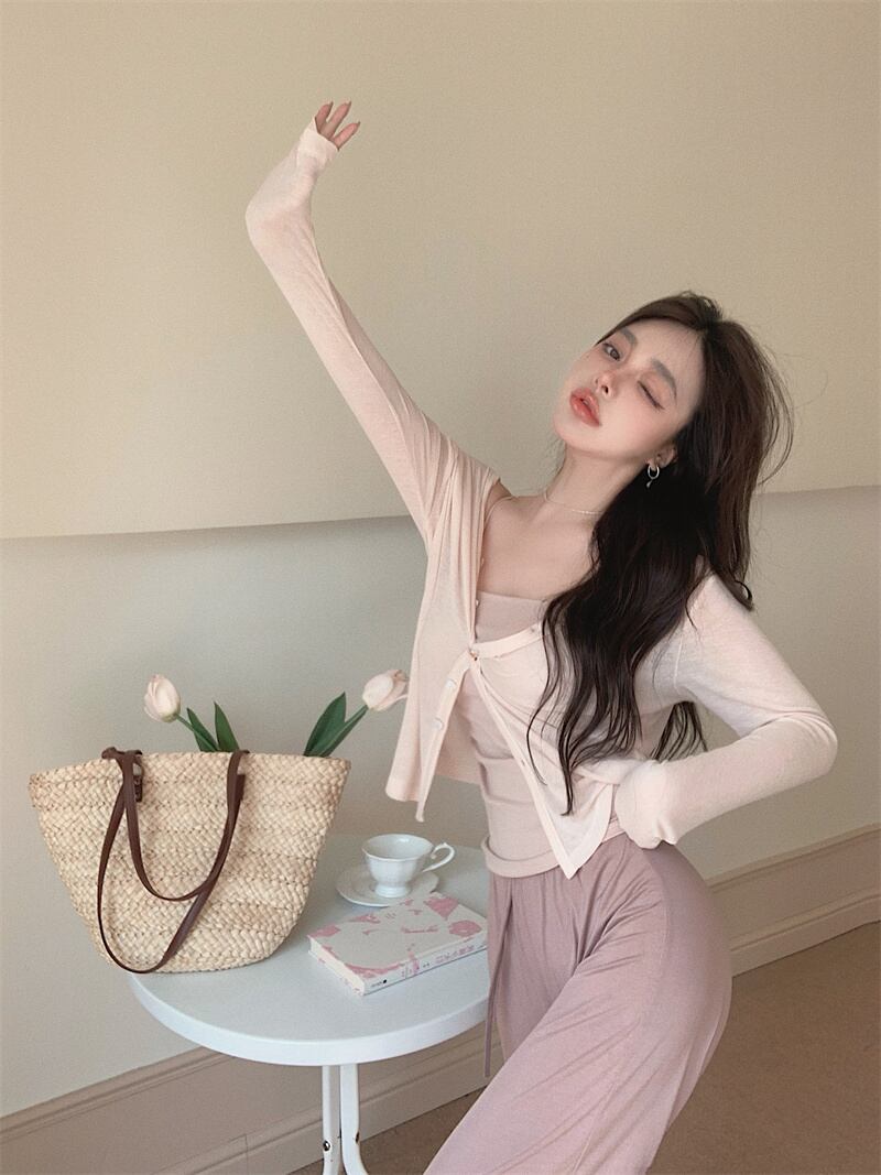 色:ピンクアプリコットベスト,青いベスト,ピンクアプリコットカーディガン,白いカーディガン,ピンクのパンツ,青パンツ