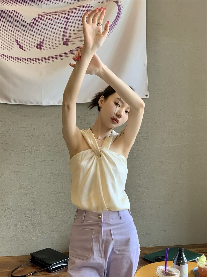 オフホワイト キャミソール ベスト レディース 夏 デザインセンス ノースリーブ ストラップレス シック セクシー アウター ショートトップ サマー 夏物 bstraw41400318909 | beaute25