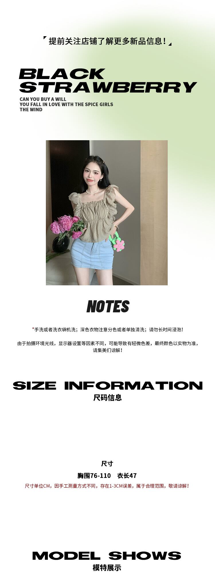 スウィートリトルフライングスリーブスクエアカラーシャツレディースサマープリーツショートシャツフリルシックなデザインニッチトップ ラッフル 大人ガーリー キュート カジュアル 夏物 スクウェア bstraw29658215045 | beaute25