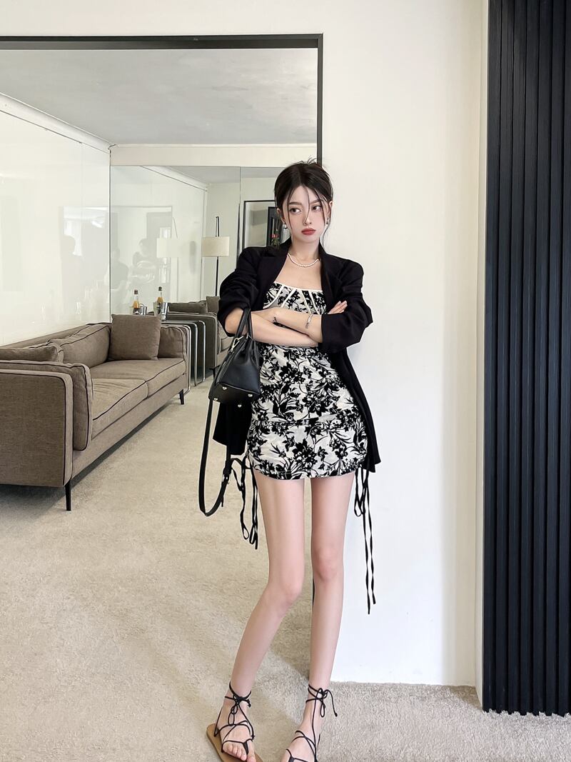 スウィートスパイスガールノースリーブスリングドレス夏フレンチフローラル気質巾着セクシーなウエストバッグヒップショートスカート 大人ガーリー キュート カジュアル サマー 夏物 花柄 bstraw18502692682 | beaute25