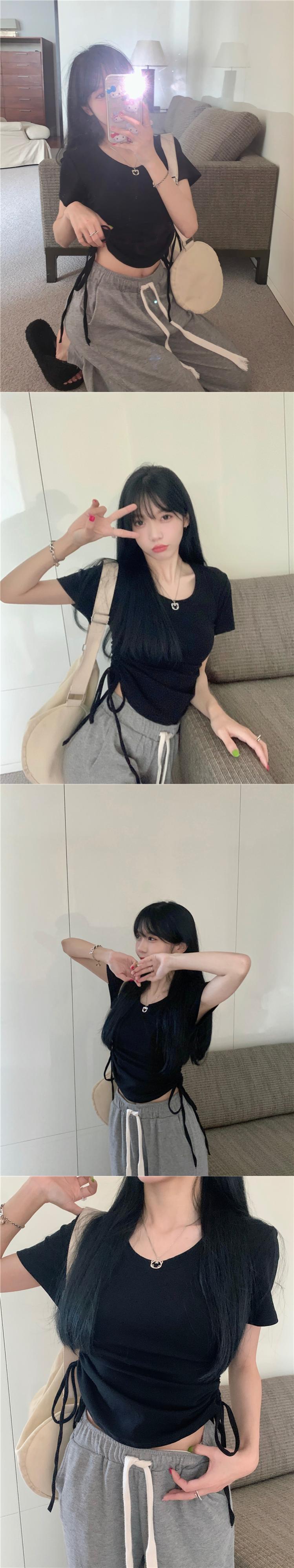 グリーン 巾着 フロントショルダー 半袖 Tシャツ レディース サマー スパイス ガール 小さめ イレギュラーヘム ショート トップス ハーフスリーブ 夏物 bstraw82535081293 | beaute25
