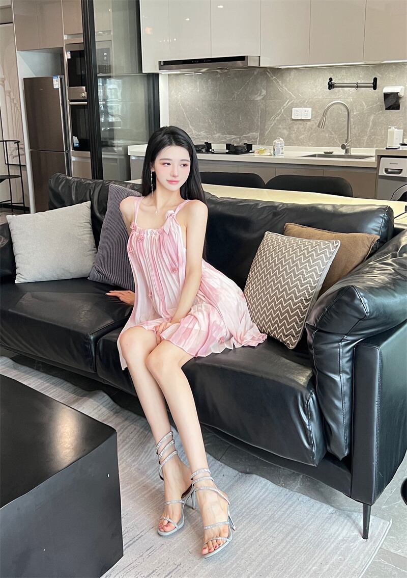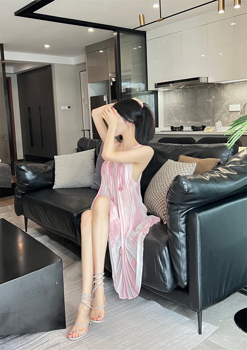 甘い女の子の立体的な花サスペンダー ドレス妖精夏ハイエンド スカート ノースリーブ緩い気質プリーツ スカート 大人ガーリー スウィート キュート カジュアル サマー 夏物 フラワーデザイン bstraw45057805091 | beaute25