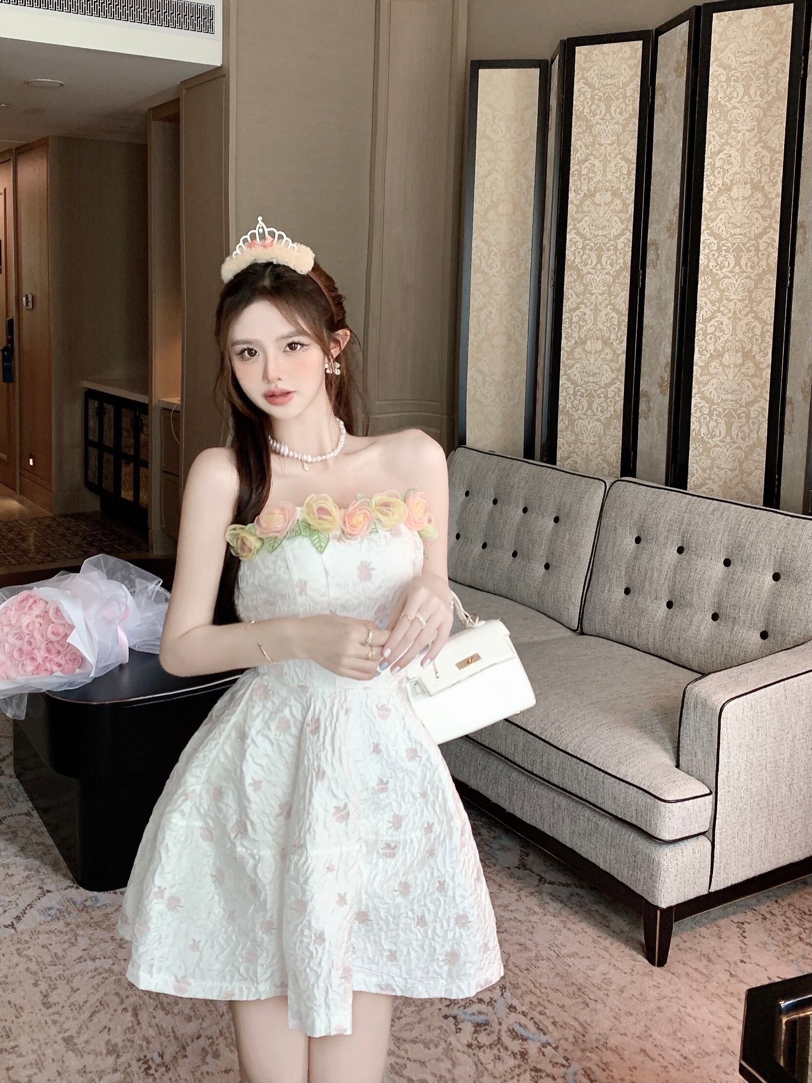 甘いチューブトップドレス妖精夏重工業花ワンショルダーウエストショートスカートセクシーなaラインスカート 大人ガーリー スウィート キュート カジュアル サマー 夏物 フラワーデザイン bstraw94281936200 | beaute25