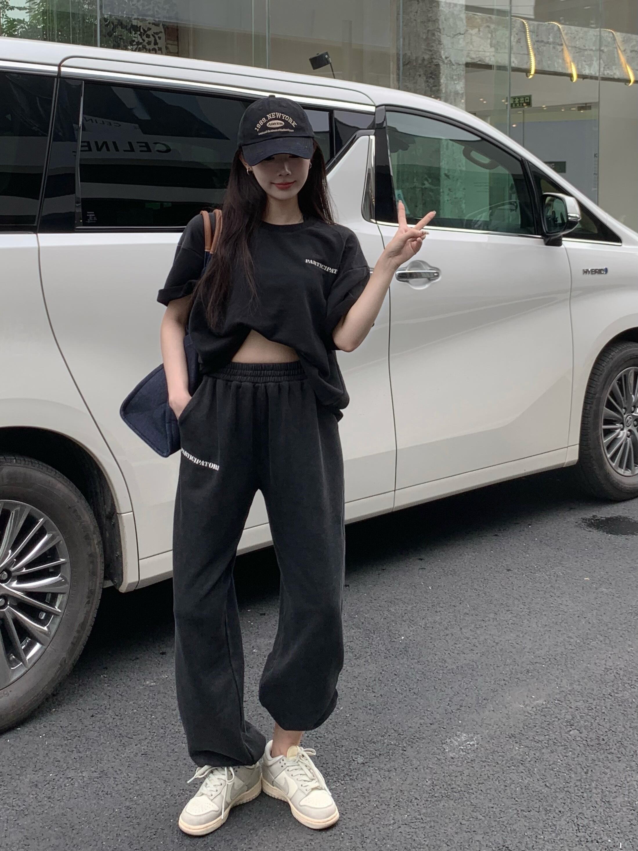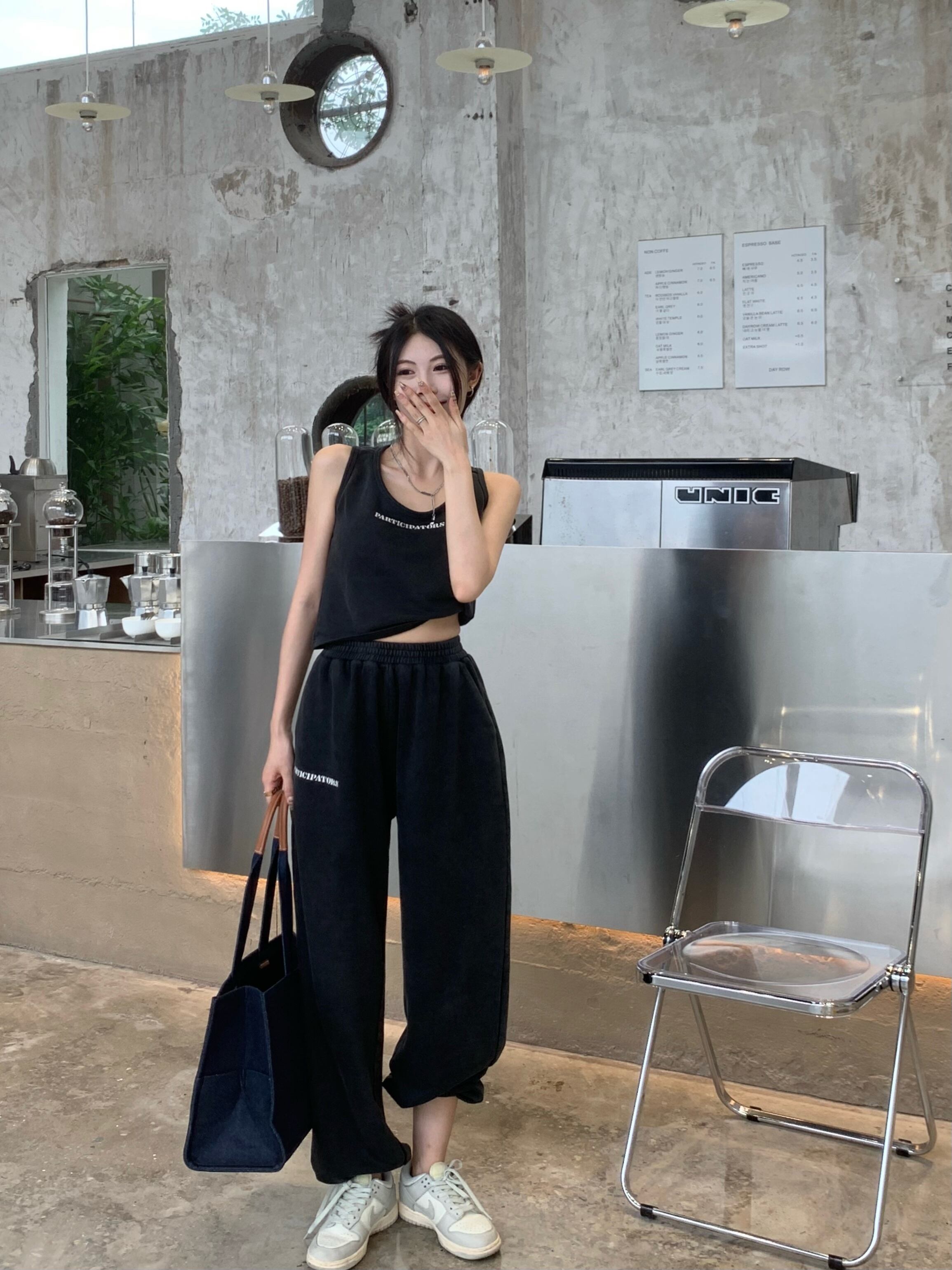 色:黒のベスト,黒いTシャツ,黒のスウェットパンツ
