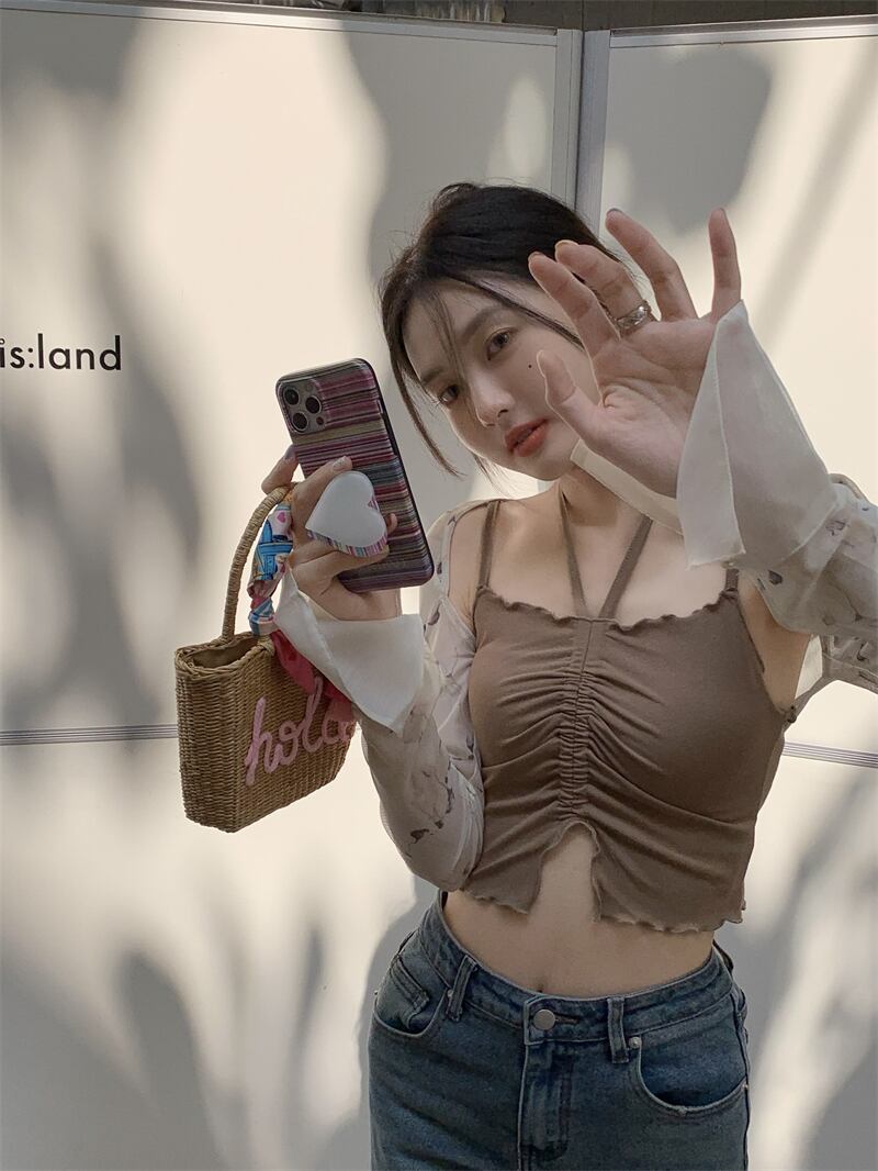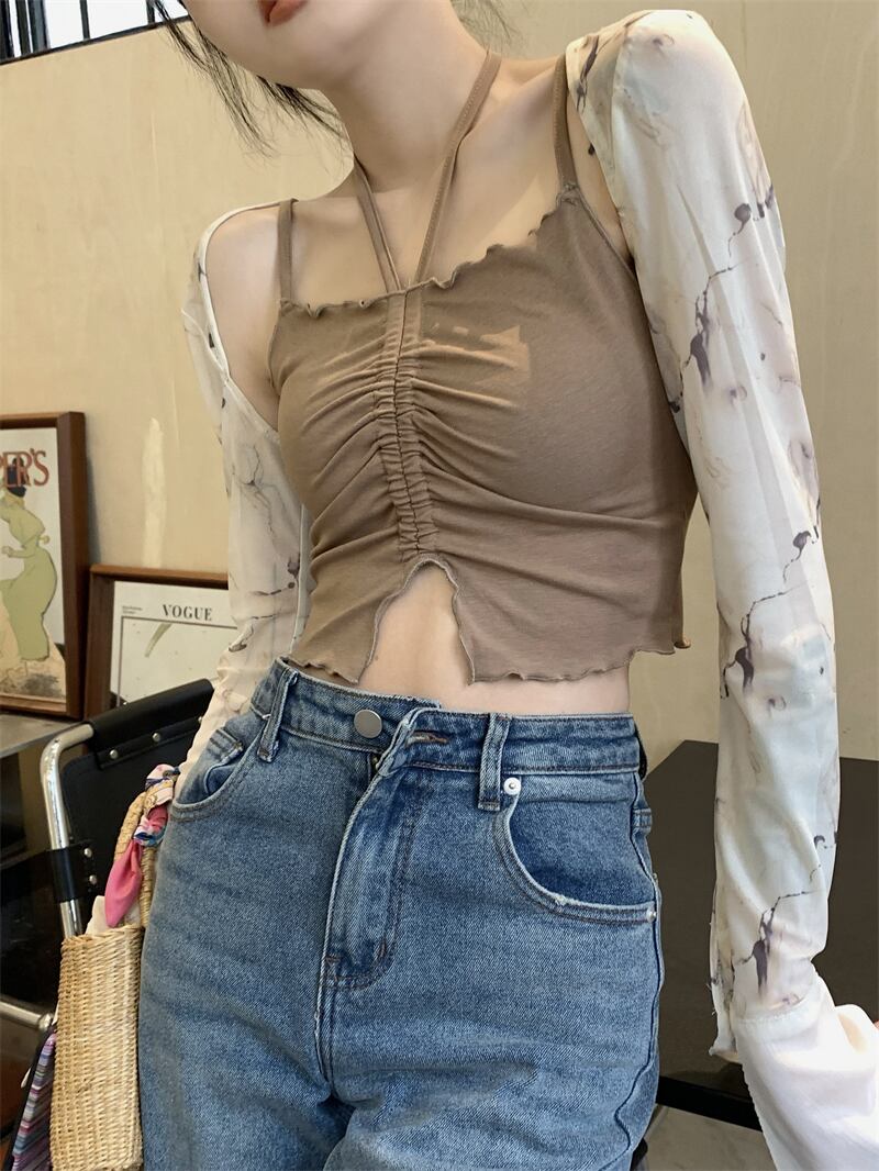 スウィートベイビー ホルターネック キャミソール レディース 夏 デザイン ニッチ シック スリムフィット 外着 ボトムス シャツ トップス 大人ガーリー キュート カジュアル サマー 夏物 bstraw27734486935 | beaute25