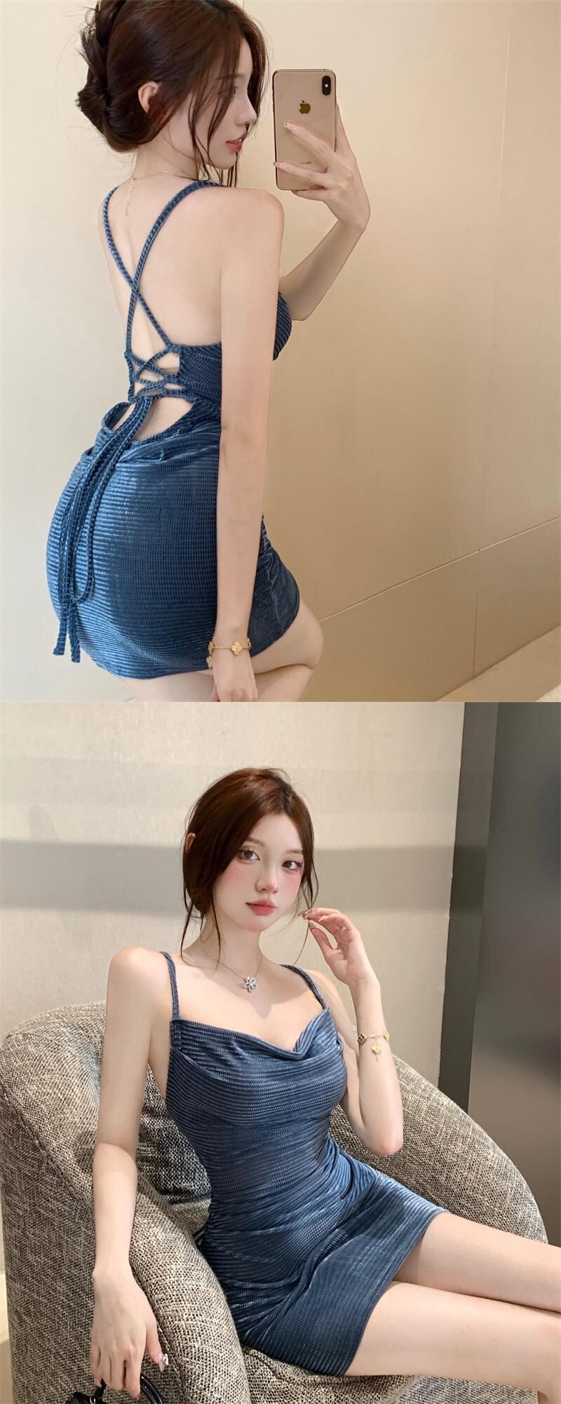 ホット背中の開いたセクシーなサスペンダー ドレス女性の夏のノースリーブ ストラップ ホルター ネック中空ウエスト バッグ ヒップ ショート スカート サマー 夏物 bstraw50181109990 | beaute25