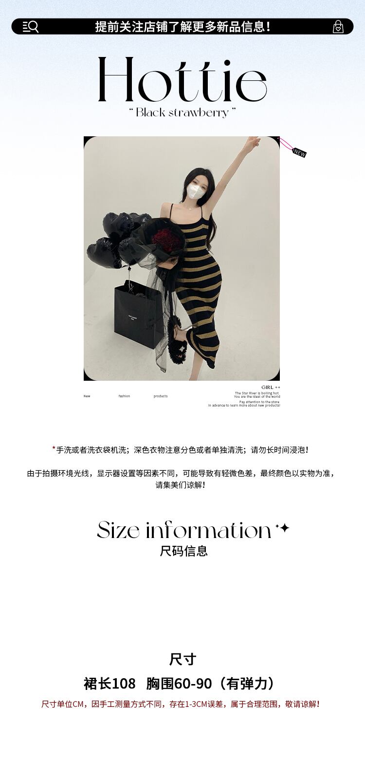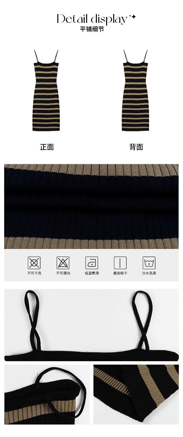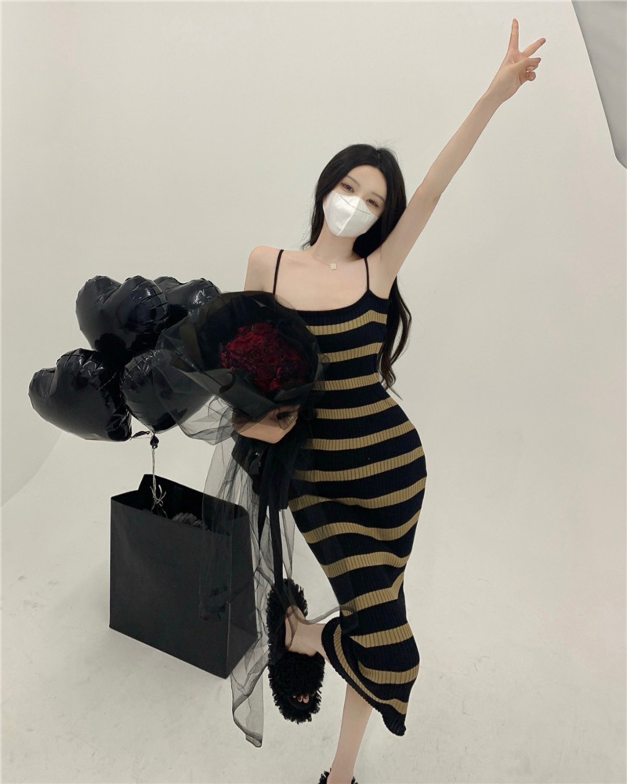 ホット ニット ストライプ サスペンダー ドレス女性の秋の純粋な欲望スタイル スリム ウエスト セクシーなミッドレングス ヒップ スカート オータム 秋物 ピュア bstraw5186564446 | beaute25