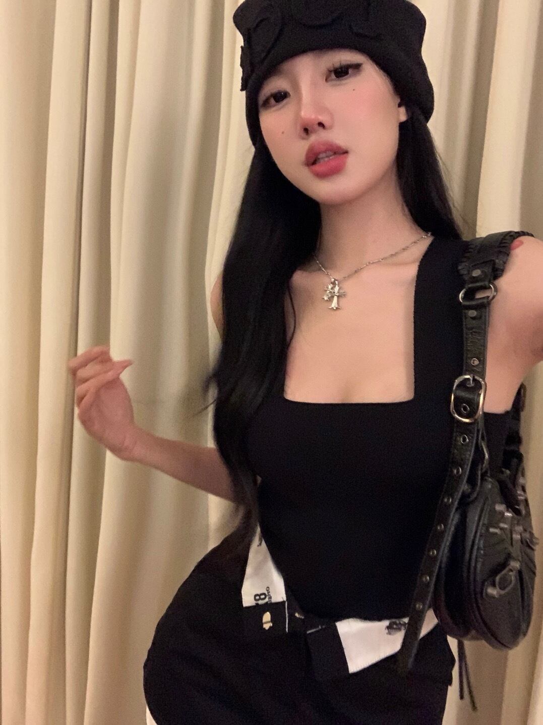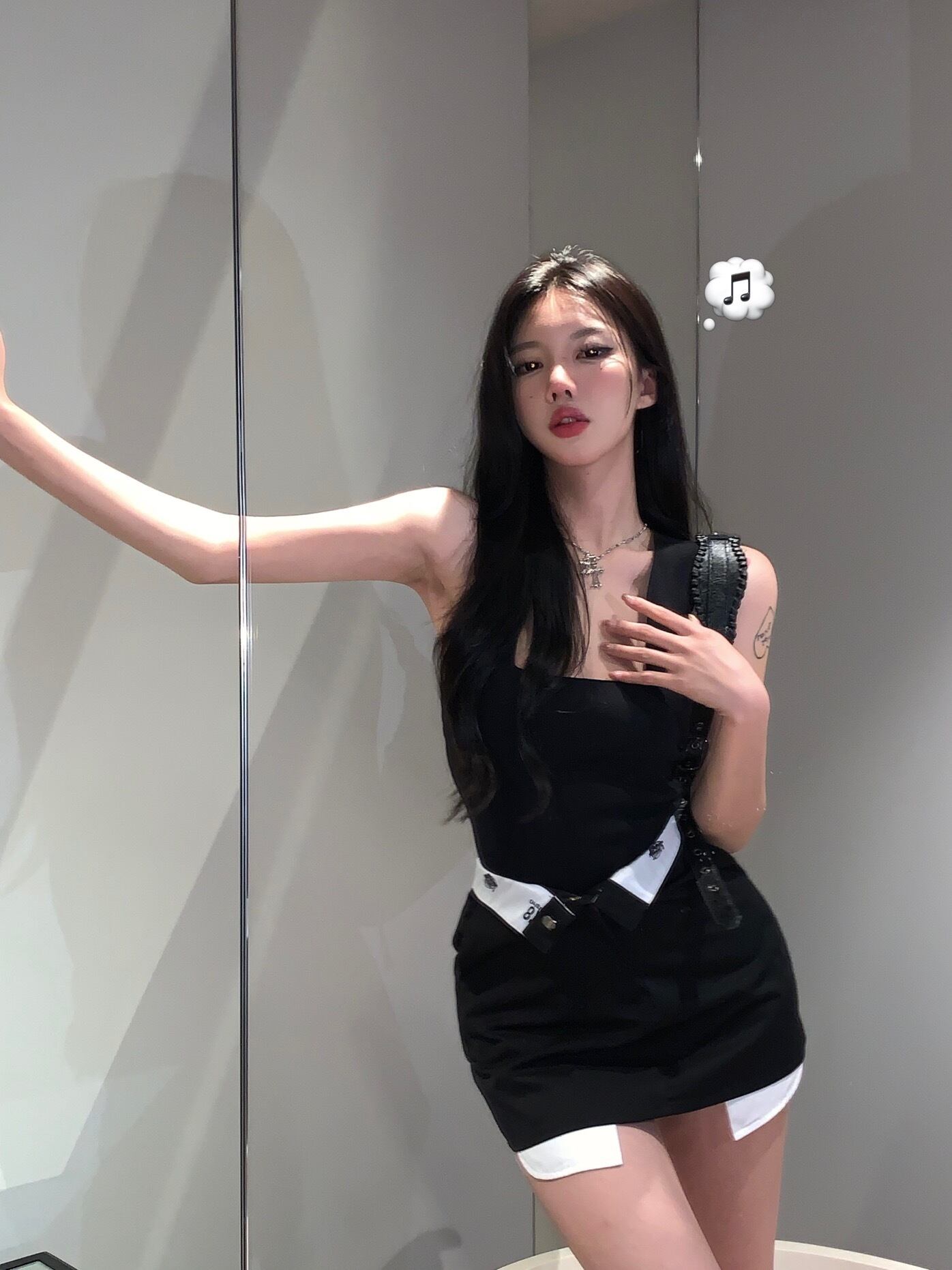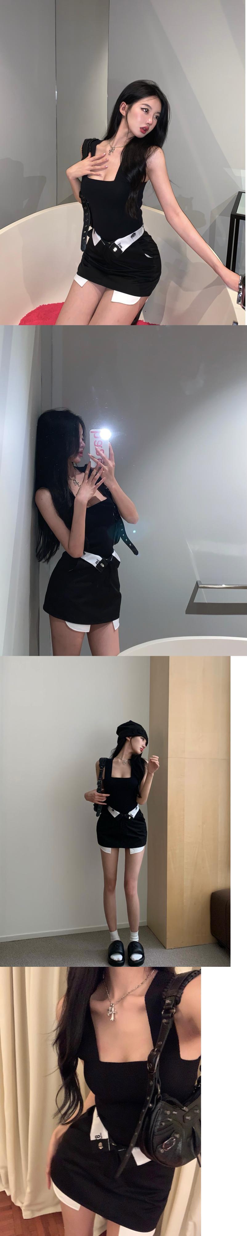甘くてスパイシーなスタイルのスーツ黒の気質のセクシーなノースリーブ サスペンダー トップ女性の夏のバッグ ヒップ スカート 2 点セット ブラック 大人ガーリー スウィート キュート カジュアル サマー 夏物 bstraw71268815083 | beaute25
