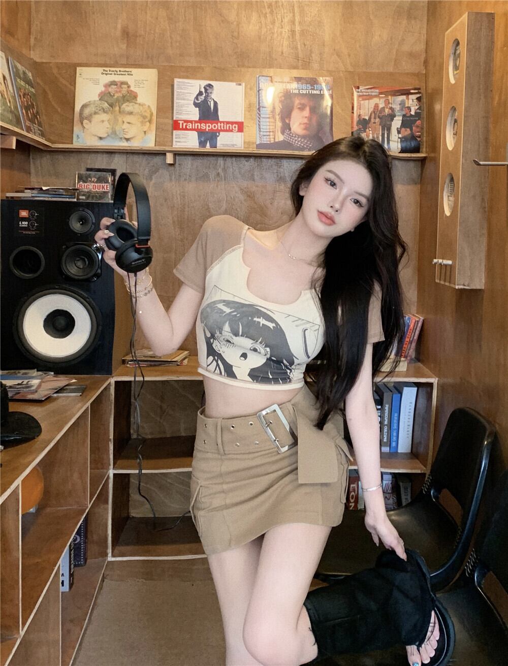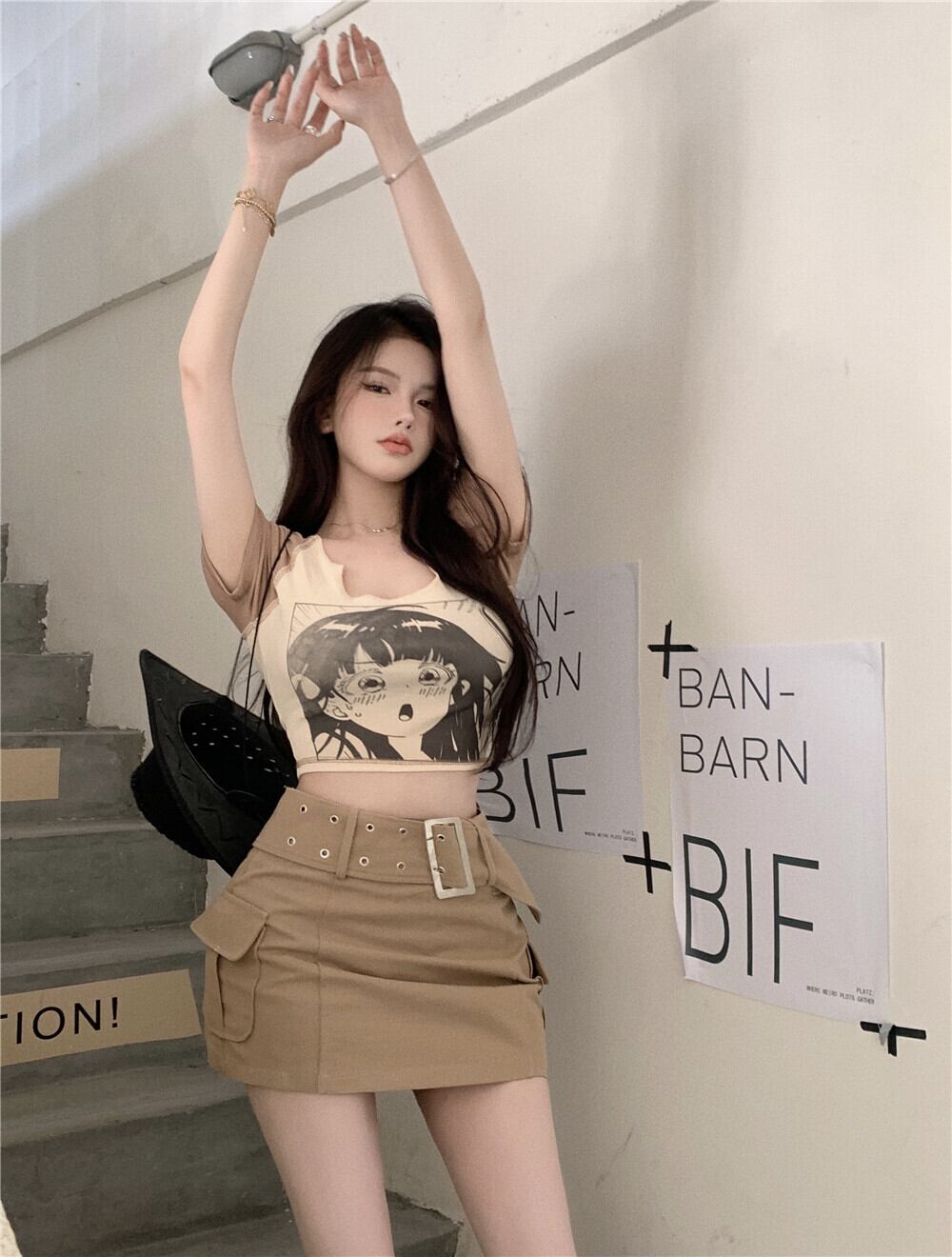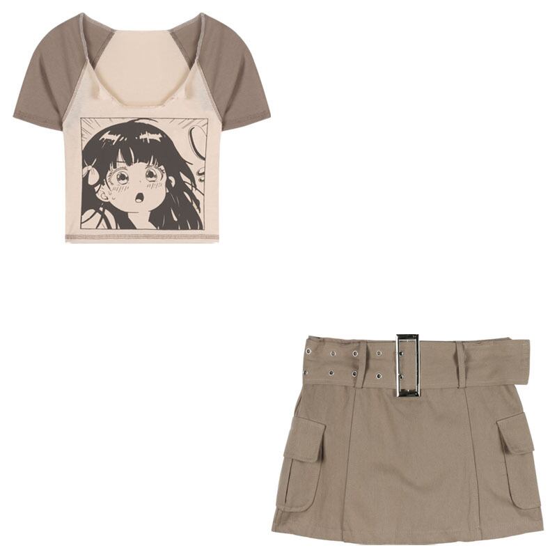 色:カーキトップ,カーキ色のスカート