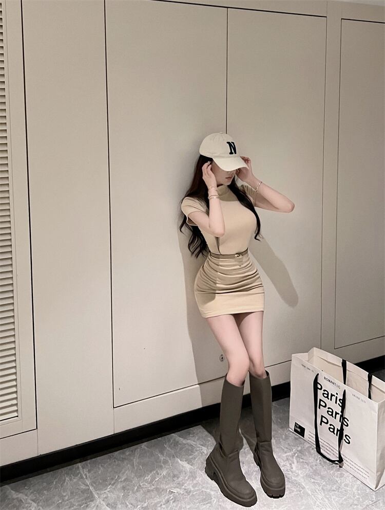 ハーフ タートルネック ニット ドレス女性の夏の純粋な欲望気質半袖スカート タイト フィット薄いバッグ ヒップ スカート サマー 夏物 ピュア bstraw14838703215 | beaute25