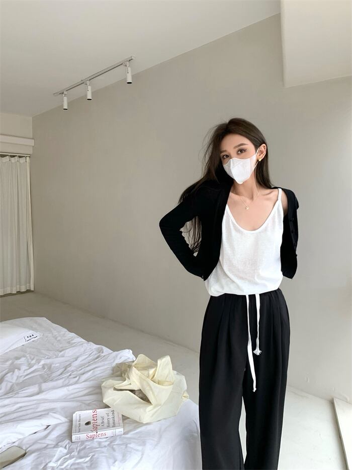 ホワイト V ネック サスペンダー ベスト女性夏バージョン緩い肩純粋な欲望カジュアル ノースリーブ トップ アウターウェア サマー 夏物 Vネック ピュア bstraw55262712876 | beaute25