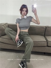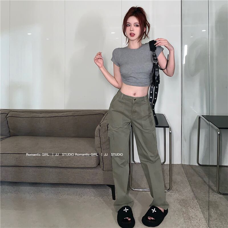 色:トップを開く,アーミーグリーンカーゴパンツ