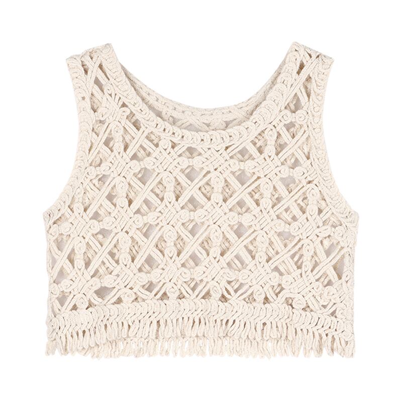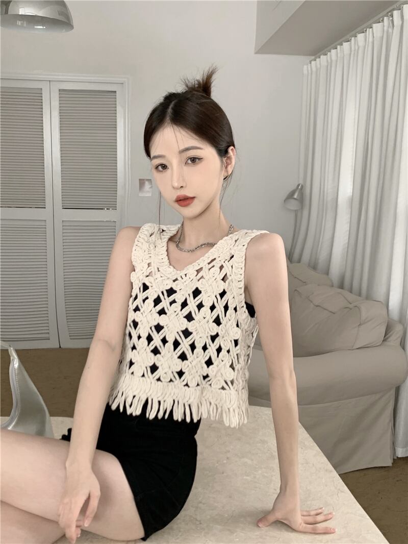 レトロな中空ニット キャミソール ベスト女性の夏の甘い短いノースリーブ ベスト ブラウス トップ アウターウェア ショート 半袖 ハーフスリーブ 大人ガーリー スウィート キュート カジュアル サマー 夏物 bstraw83186355719 | beaute25