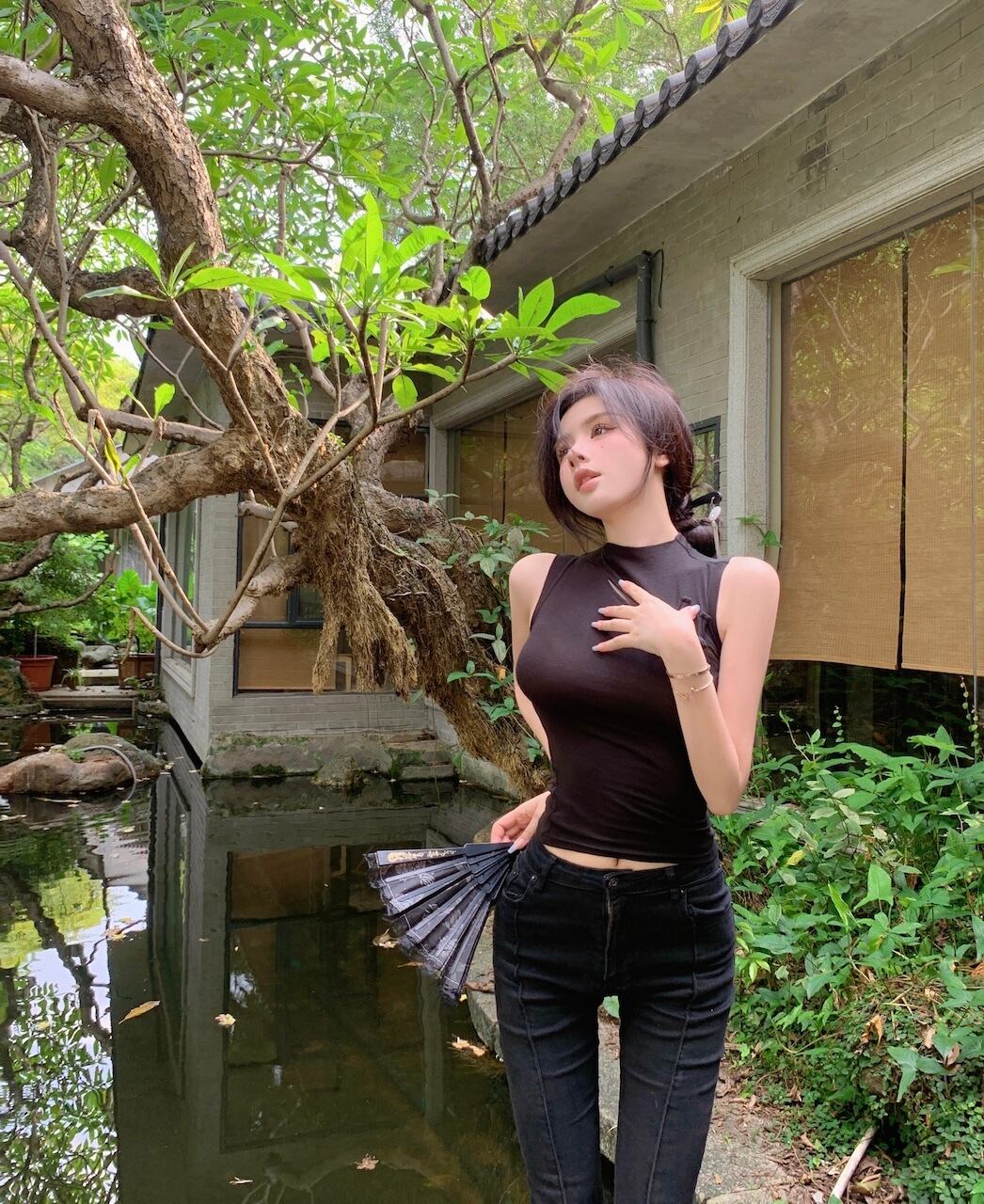 黒のセクシーな中空ノースリーブ tシャツ女性の夏の純粋な欲望民族スタイル スリム スリムでシックな底入れシャツ トップ ブラック サマー 夏物 ピュア bstraw94971446039 | beaute25